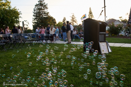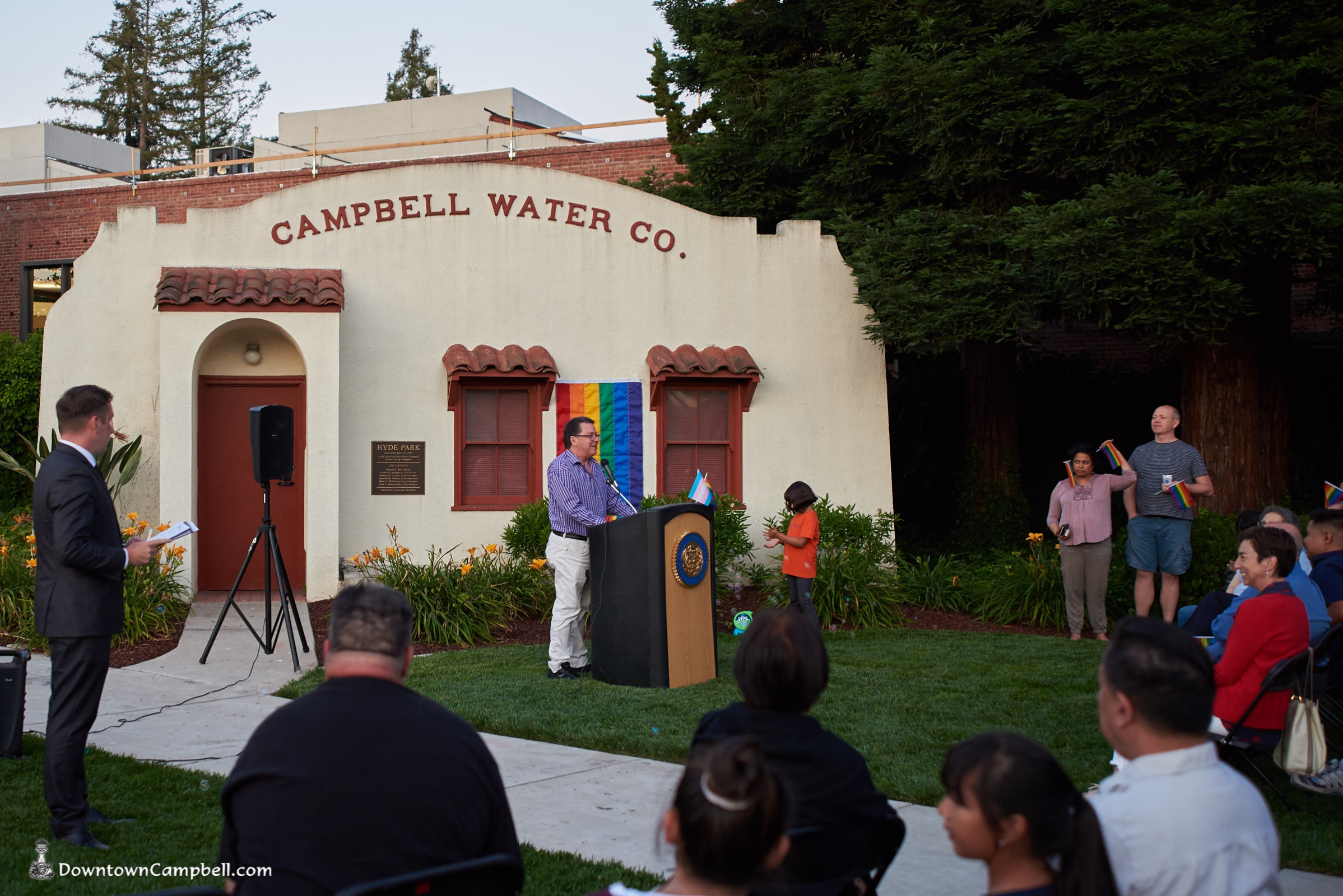 Photos from the annual Pride Month celebration with Assemblyman Evan Low at the Campbell Water Tower. This annual event is a bit like a backyard BBQ except there's no grill and there are short speeches from local dignitaries. The event concludes with a ceremonial rainbow lighting of the Campbell Water Tower to celebrate Pride Month and express the inclusive environment in the City of Campbell.