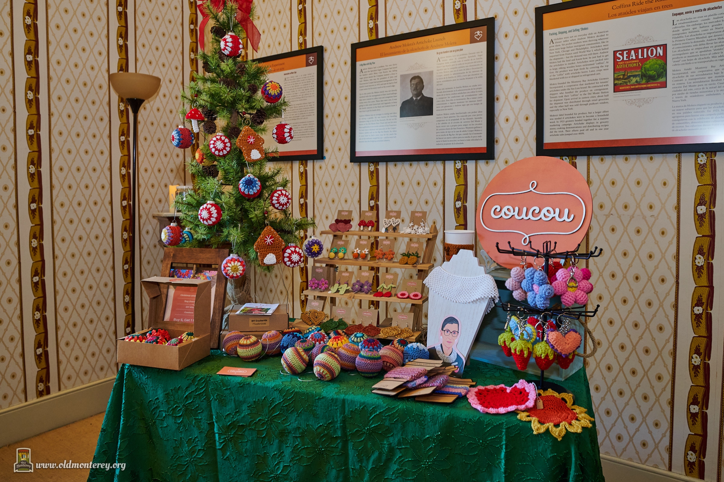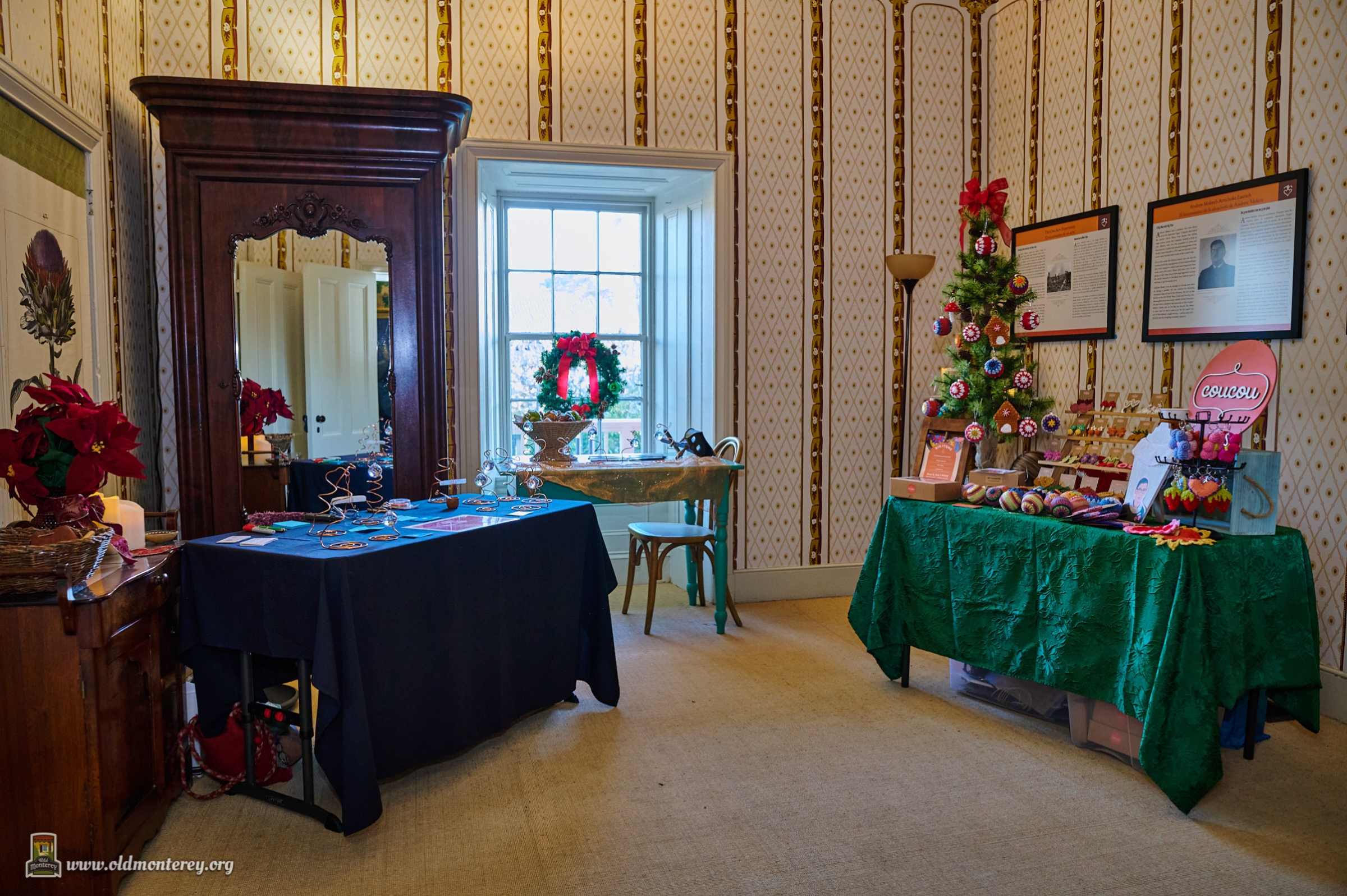 Nestled among original furnishings, beautiful holiday decor, and stories of Monterey's history, these local vendors and artisans sold their wares and shared holiday cheer. Vendors included: Aki Fresh Mex, Amarla Handmade, Basil + Olive, The Colorful Kayak Art, CouCou Crocheter, Fleur de Miel, Lily & Lavender Co., Sacred Alchemical, and Skin & Body Method.