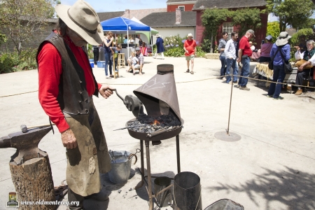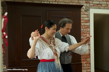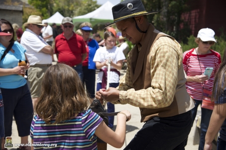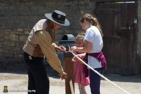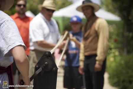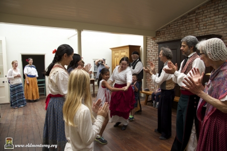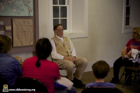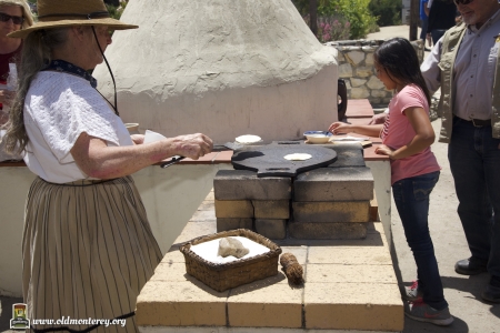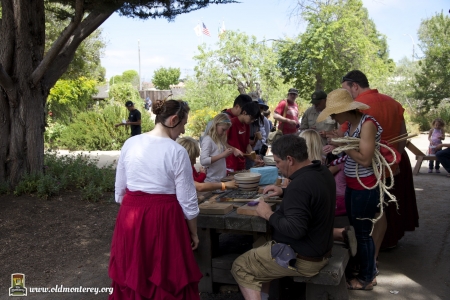 Immediately after the July 4th Parade, Monterey State Historic Park volunteers dressed in historic costumes took visitors back in time with interactive exhibits to educate kids about what life was like in the Monterey area in the 19th century. You could learn the fandango, make rope, and play games of the era among other things. There was also Captain Cooper's restored coach and wagons on display. Photos by Sheldon Chang.