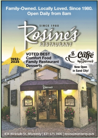 Rosine’s is a beloved, third-generation, family-owned restaurant that’s been part of the Monterey community for 45 years. Founded and still run by the Culcasi family, Rosine’s has grown into a local institution with each generation continuing the tradition of serving elevated comfort food and family Italian favorites, handcrafted with care and fresh quality ingredients.