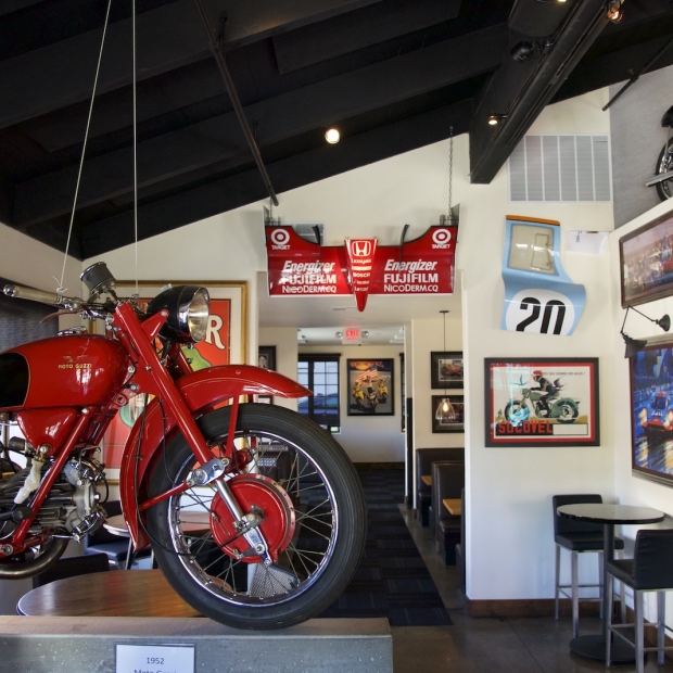 Turn 12 Bar & Grill serves California Comfort Cuisine and features a spectacular 50 foot pewter bar top, motorcycles, and vintage photographs in a modern and sporty environment that pays homage to Laguna Seca Raceway’s 11 Turns.
