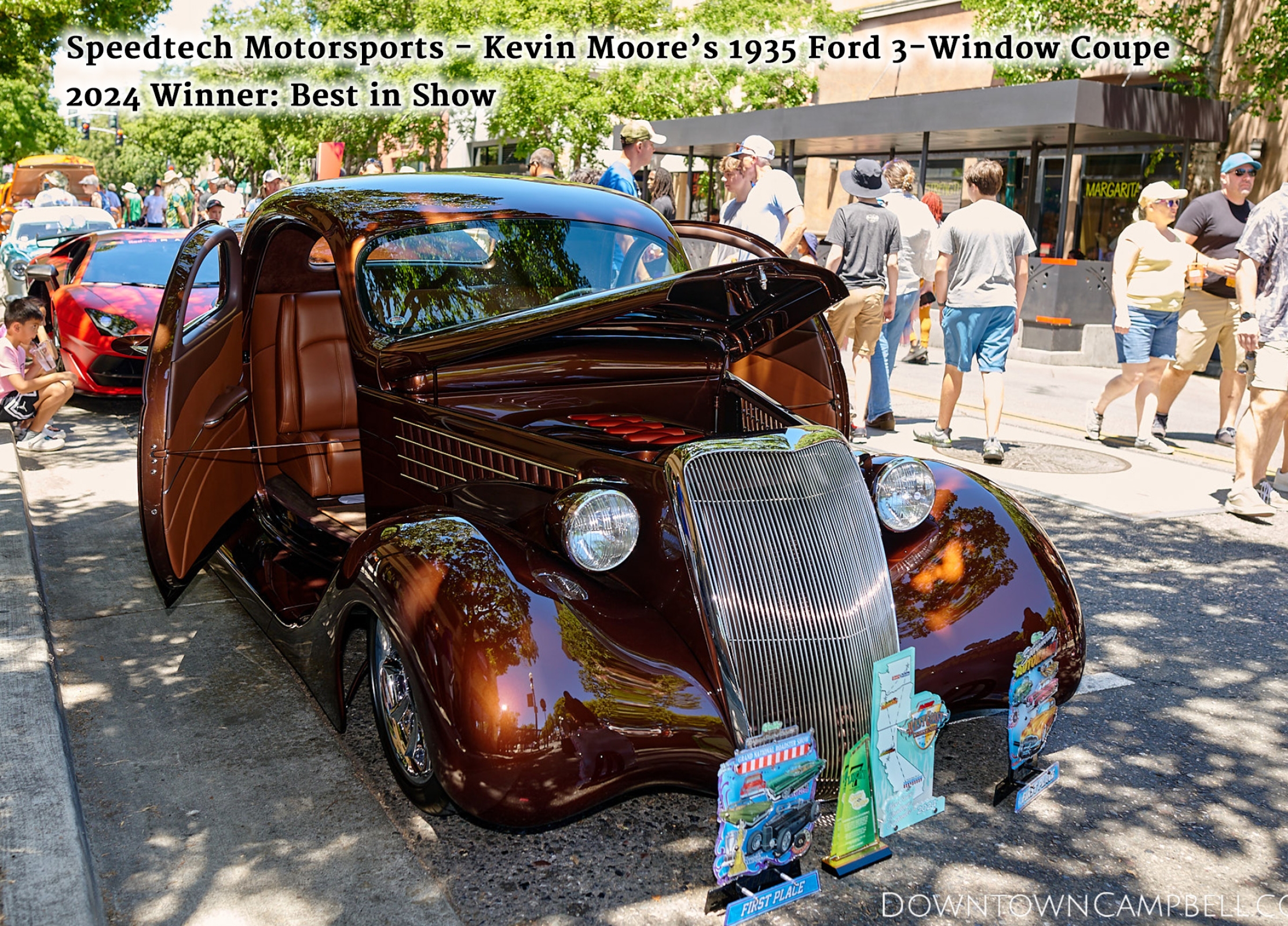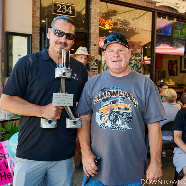 The 2024 Historic Downtown Campbell Car Show is in the books! We hope you enjoyed attending it as much as we did hosting it. We've got awards from the show for you and other things to announce. There were seven prize categories with a custom trophy awarded to the best car in each group as selected by our panel of judges.