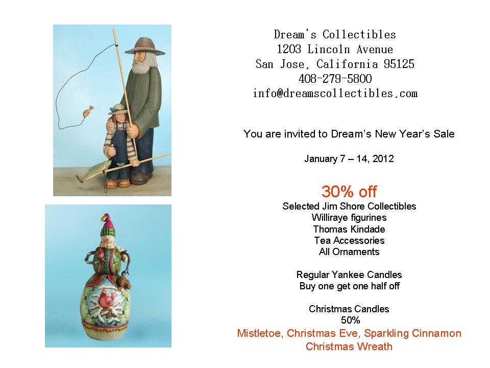 You are cordially invited to Dream Collectibles' New Year's Sale, January 7-14, 2012.