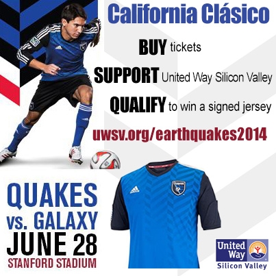 Saturday, June 28th @ 7:30pm Stanford Stadium. Purchase your discounted SJ Earthquake VS. LA Galaxy tickets here from United Way Silicon Valley. This will be a day of fun for the entire family as this event will also feature a salute to the Armed Forces and a postgame fireworks extravaganza!