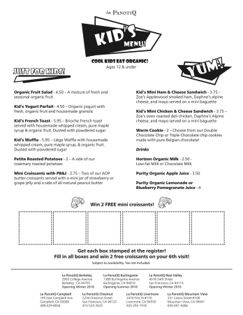La Panotiq is excited to be releasing a new kids' menu at all of their locations in the Bay Area. To celebrate, they'll have balloon artists, face painters, and activities for kids. Come have a ball and check out their new menu made just for kids.