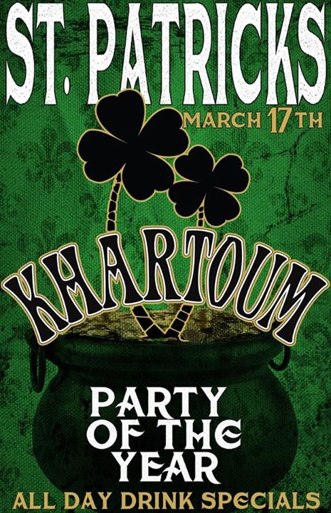 It's the party of the year at Khartoum for St. Patrick's Day! Drink Specials All Day!