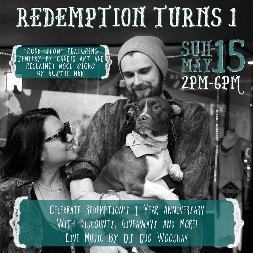 On Sunday, May 15th, REDEMPTION will mark our one year anniversary of selling California made goods in Downtown Campbell! We truly love and believe in supporting local artisans and look forward to starting our second year of bringing you the best of locally made gifts, fashions, and decor items.