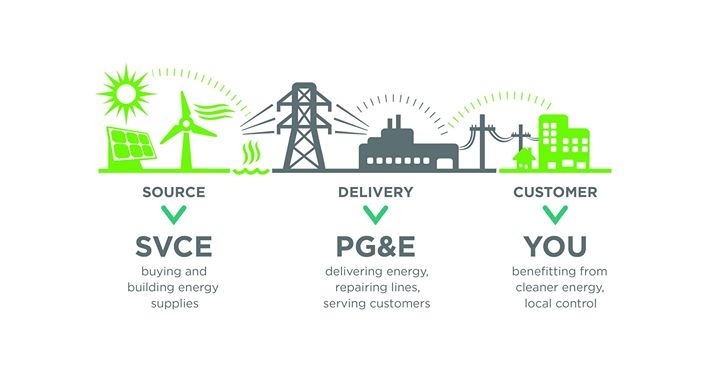 Silicon Valley Clean Energy (SVCE) is a new non-profit, public agency, formed in spring 2016 by twelve South Bay communities, including Campbell, to source clean electricity on our behalf at costs below PG&E’s comparative generation rates. PG&E is still an essential partner as they will continue to deliver electricity over existing power lines, maintain the lines, send bills and provide customer service.