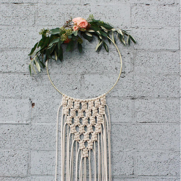 For the boho chic people - this class will make all of your macrame dreams come true. This class will show you some basic knots for macrame and let you practice an easy pattern. A 10" gold hoop will be provided for you to create your own hoop. There will be the option of adding some foliage and flowers to accent your hoop.