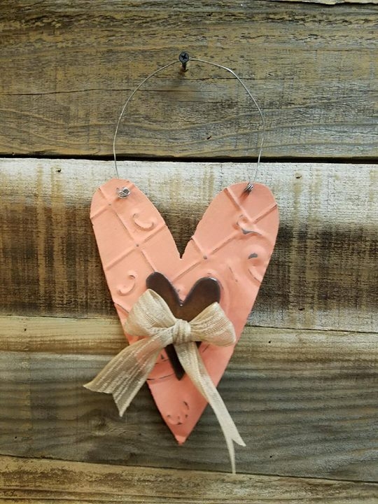 In this fun little workshop, we will learn about Debi's DIY Clay + Chalk Paint and how to apply it to a metal surface. You will choose a color of your choice to use on your heart(s). The smaller heart has a rust finish but can be painted if you choose. We will add wire and ribbon to create a hanging heart decoration. The project is approximately 10" x 8" in size.
