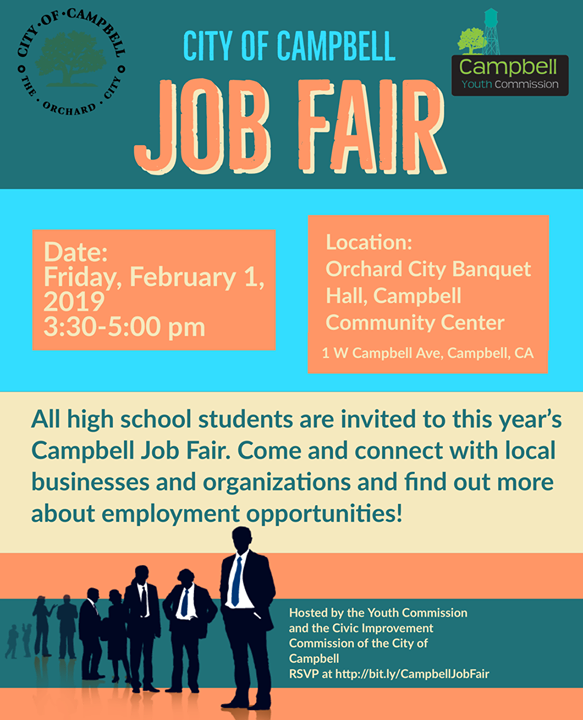 The Campbell Youth Commission will be hosting their third annual High School Job Fair on Friday, February 1st, 2019 in the Orchard City Banquet Hall at Campbell Community Center.
