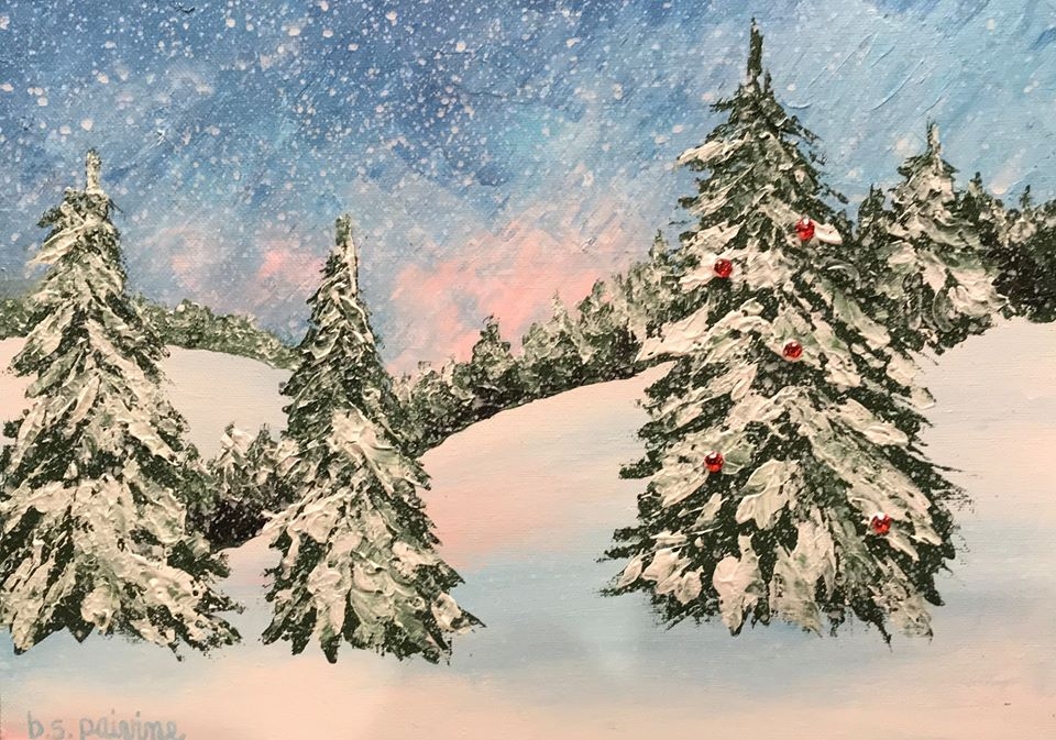 Sovino Wine Bar and Merchant presents a Holiday Paint and Sip Class! Tonight, local artist and retired art teacher Bunny Paivine will be teaching an easy-to-follow painting class, where you'll learn to paint this snowy scene. Whether you’re a seasoned painter or a first-timer, this is a great night out. The class is held in the wine bar and participants are able - in fact, encouraged - to enjoy a glass or two of wine during the class. You’ll take home your own 11 x 14 canvas painting.