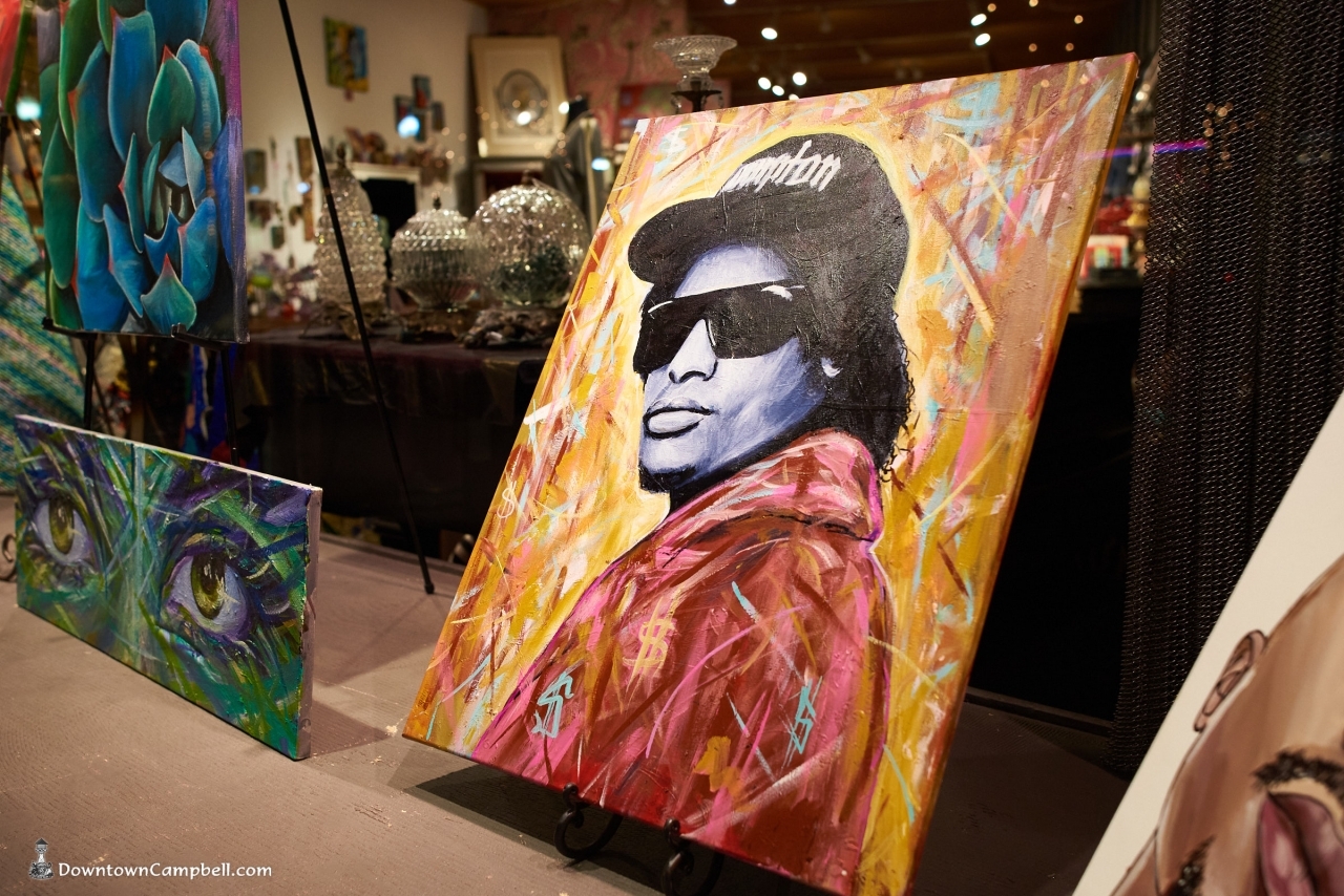 Mico Solórzano, the artist behind the current pop culture paintings art installation in the window of Simply Smashing boutique will be making an appearance for an art reception on February 1st from 6-10pm. The art in the window is available for sale and Mico is available for commissioned pieces. Come meet Mico and see some of his work!