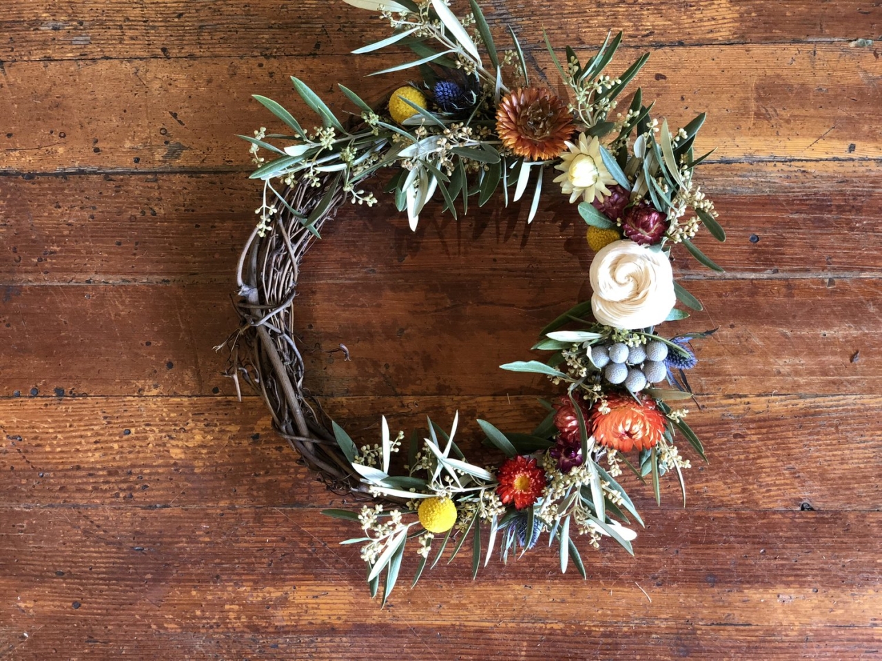 The perfect addition to your home decor! In this class you will design your own wreath with a variety of dried florals and greenery. A variety of sizes will be provided for you to pick from on the day of the workshop. All materials included in cost.