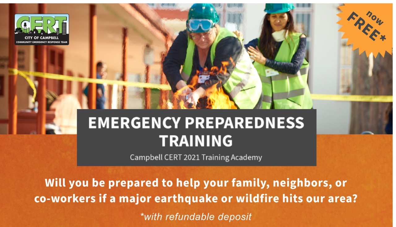 Campbell CERT is offering a 25 ½-hour hybrid on-line and in-person training academy to help you prepare. You need no prior medical or emergency training—we will train you in everything you need to know. Cost is FREE with a $50 refundable deposit.