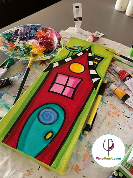 VinoPaint: Home Sweet Home, Funky Birdhouse– Virtual Online Painting Class 09/17/21