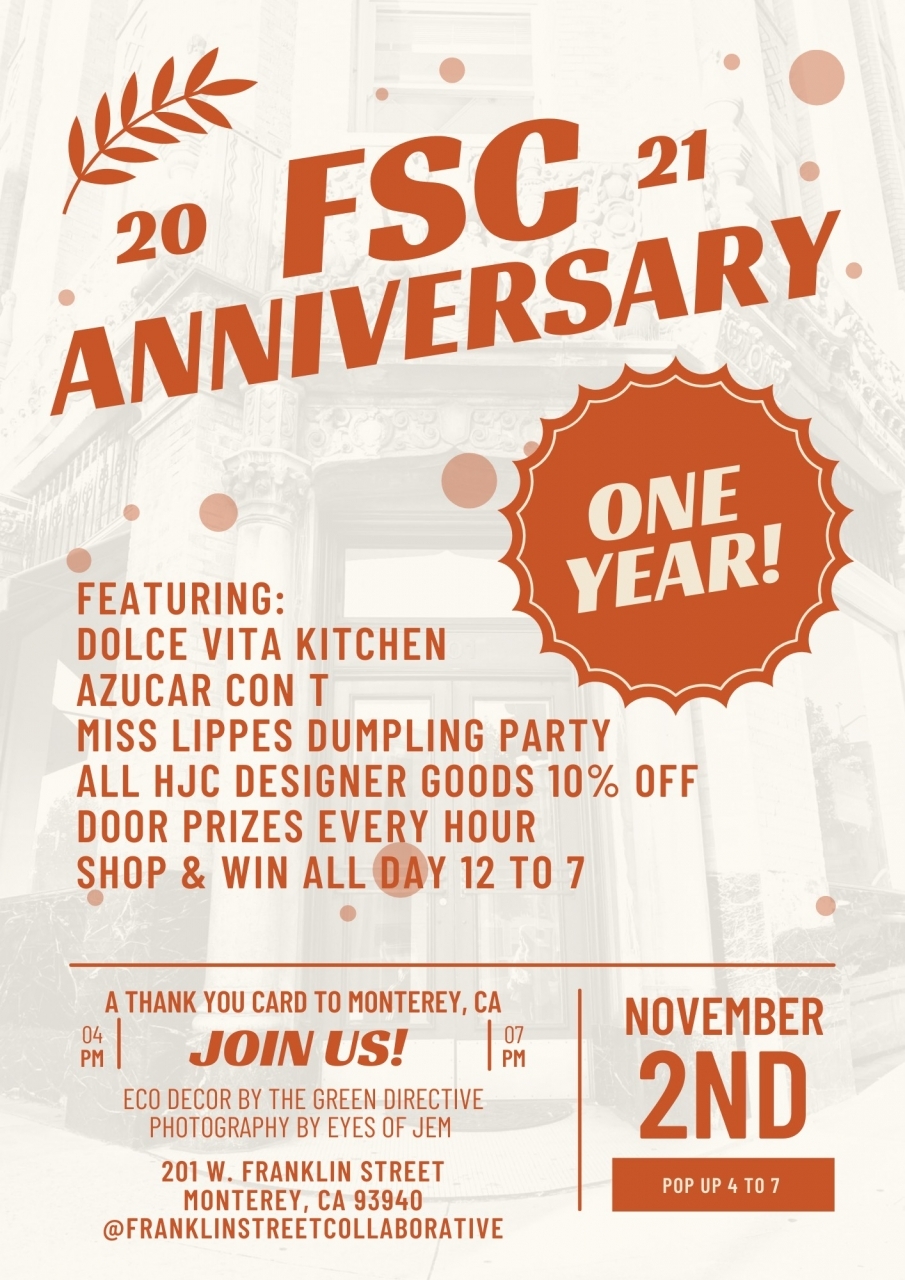 Franklin Street Collaborative invites you to our One Year Anniversary Celebration on Tuesday, November 2.