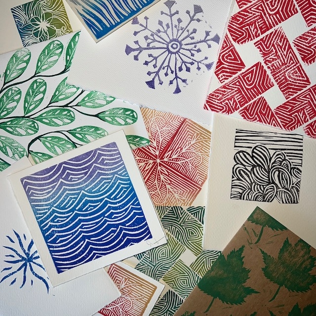 This holiday season, express your gratitude for your loved ones with handmade cards. We will be using lino printing methods to make our own holiday cards. This super fun and simple process allows you to play with shape and texture to make beautiful cards.