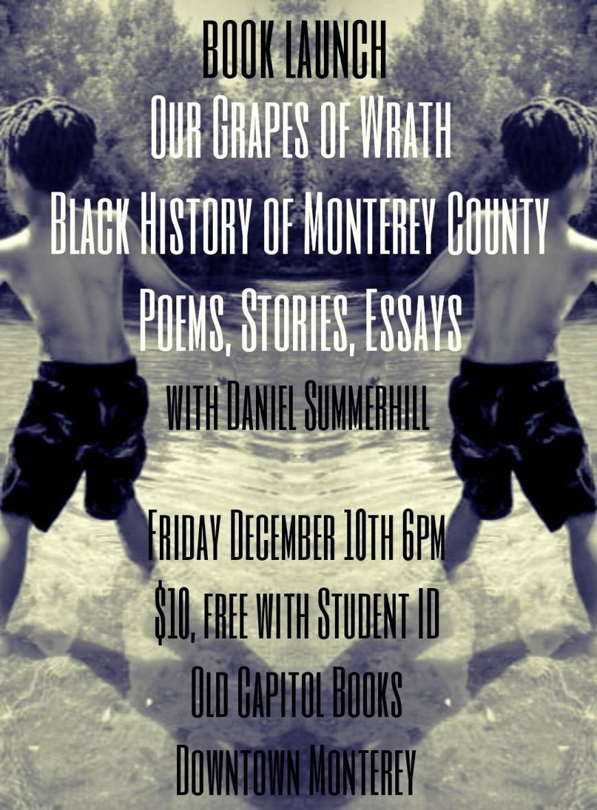 Old Capitol Books invites you to join us for an evening with Daniel Summerhill and a book launch party on Friday, December 10 at 6pm for Our Grapes of Wrath, a Project 21 Anthology and a Black History of Monterey County. Fee is $10 and includes a free copy of the book. Please register online here. Students can enter the event for free with their student ID.