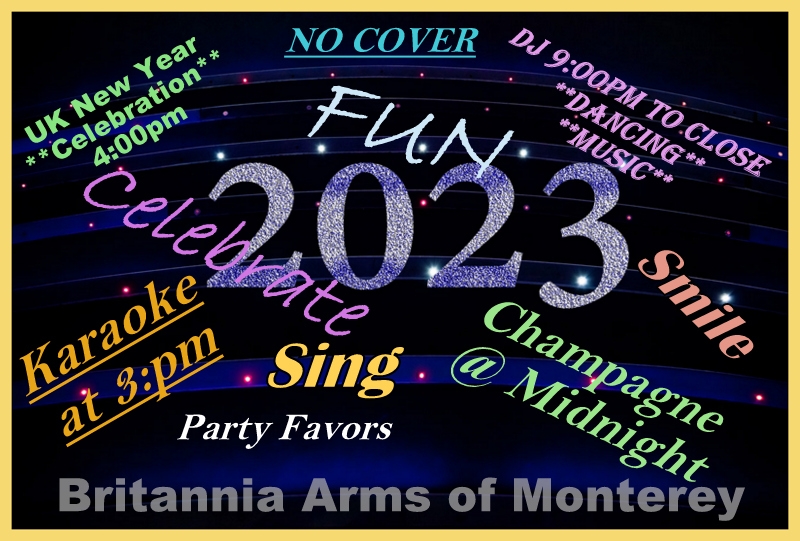 Celebrate New Year's Eve 2023 at Britannia Arms Monterey