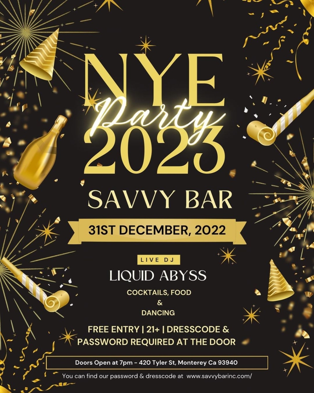 Savvy Bar is throwing a New Year's Eve Party! Enjoy cocktails, food, dancing, and music with DJ Liquid Abyss. Doors open at 7pm. There's no cover charge, but there's a dress code and a password required at the door (find details on both at our website). Ages 21 and over only.