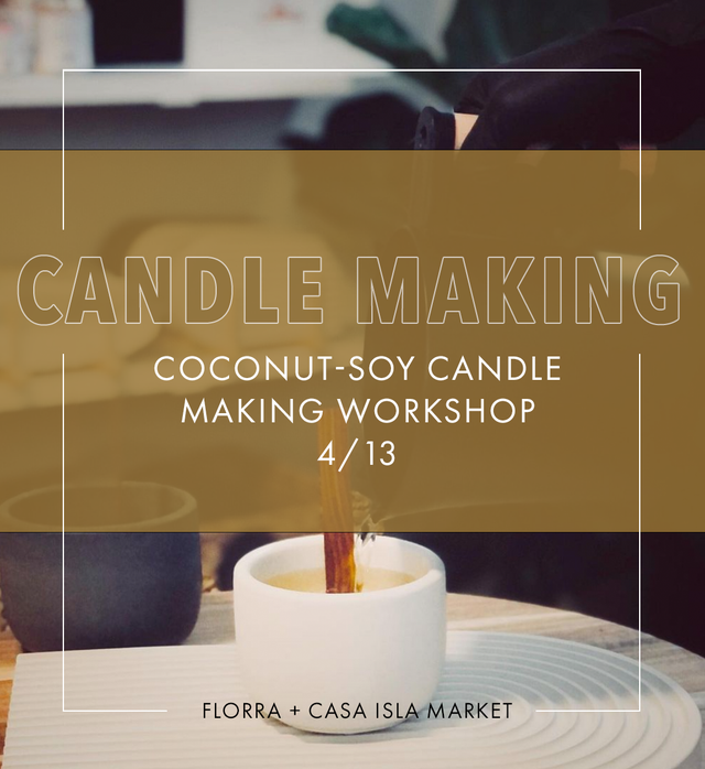 Casa Isla Market is excited to host a Candle Making Workshop at the newly opened and gorgeous Florra in downtown Campbell. Be enlightened by our nontoxic coconut-soy candle-making process presented by our founder and chandler. You will choose a spring scent from our lovely fragrance selection, receive a handmade concrete vessel to pour your candle, and learn how sustainability plays a huge role in our process and craft.