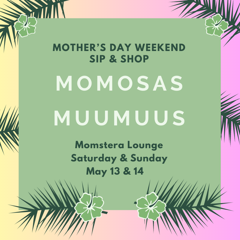 Do your Mother's Day shopping this weekend for a special sip & shop OR bring your mom! The Lounge will be sharing that Aloha spirit over island music, mimosas, & shopping for that special someone who holds a motherly role in your life.
