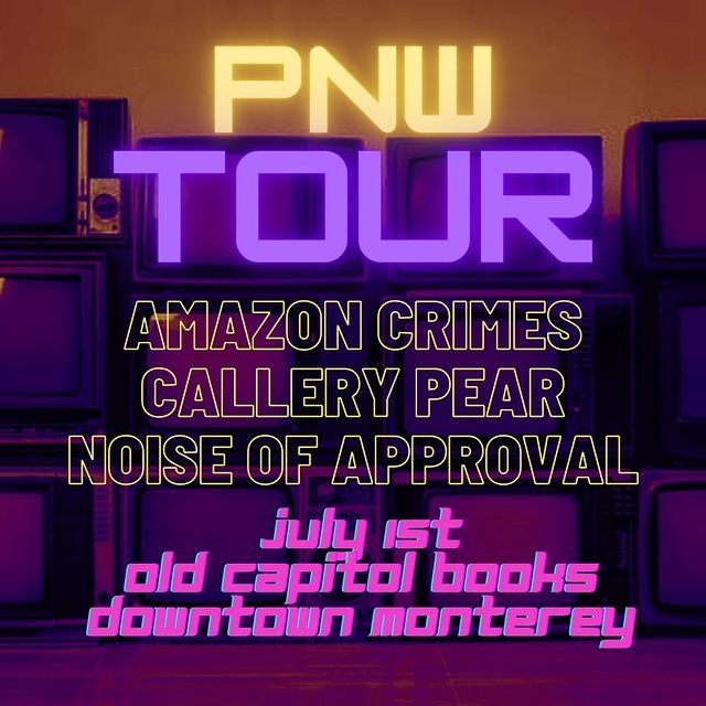Old Capitol Books is very pleased to report that Monterey is now part of the Pacific Northwest! Come celebrate with us and touring emo/indie bands Amazon Crimes, Callery Pear, and Noise of Approval as they travel through Monterey on their PNW Tour on Saturday, July 1. Doors open at 7pm. $10 cover (no one turned away for lack of funds).