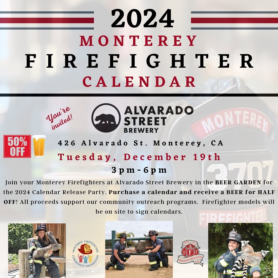 The Monterey Firefighter Foundation invites you to join us on Tuesday, December 19, 3pm-6pm, in the beer garden of Alvarado Street Brewery and Grill for our 2024 Firefighter Calendar Release Party!