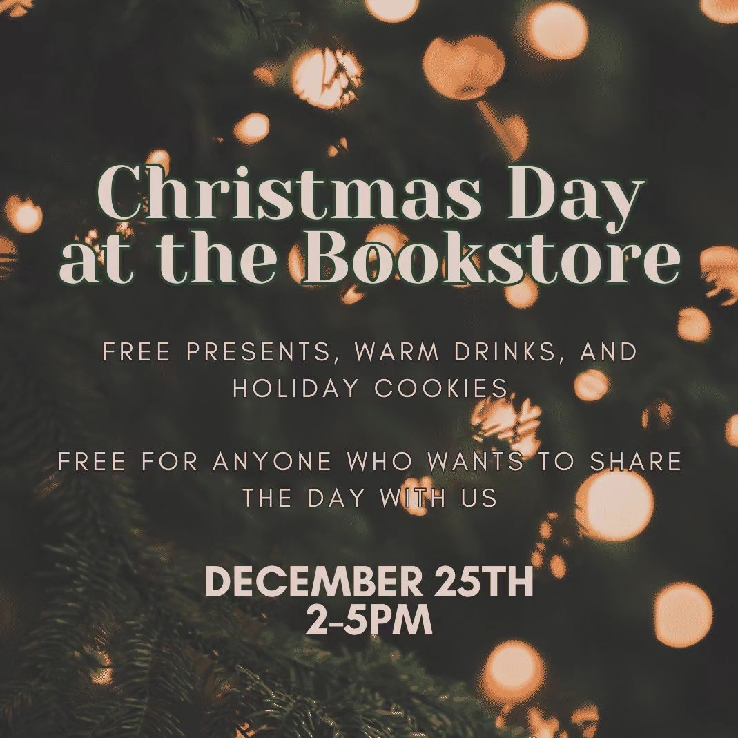 Old Capitol Books invites you to spend Christmas afternoon with us, 2pm-5pm. We'll have free gifts, warm drinks, and cookies. This is free and open to all - we want everyone to have a cozy and welcoming place to come and celebrate the holiday.