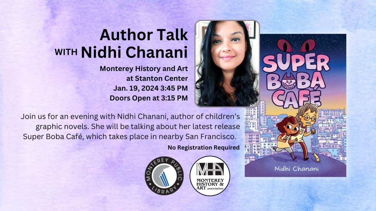 The Monterey Public Library and Monterey History and Art Association are teaming up to bring you an author talk with Nidhi Chanani on Friday, January 19 at 3:45pm at Stanton Center. Doors open at 3:15pm. The event is free to all. No reservations necessary.