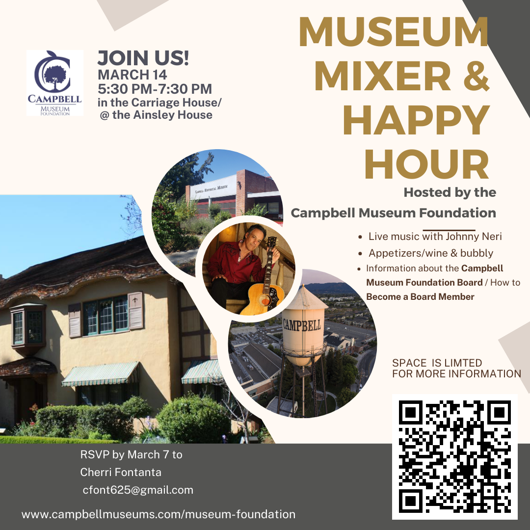 Shape history in Campbell! Join the Campbell Museum Foundation Board and make a difference! We bring the rich history of Campbell to life through engaging exhibits, educational programs, and community events. We're currently seeking passionate individuals to join our board and help us raise funds to support the Campbell Historical Museum and Ainsley House.