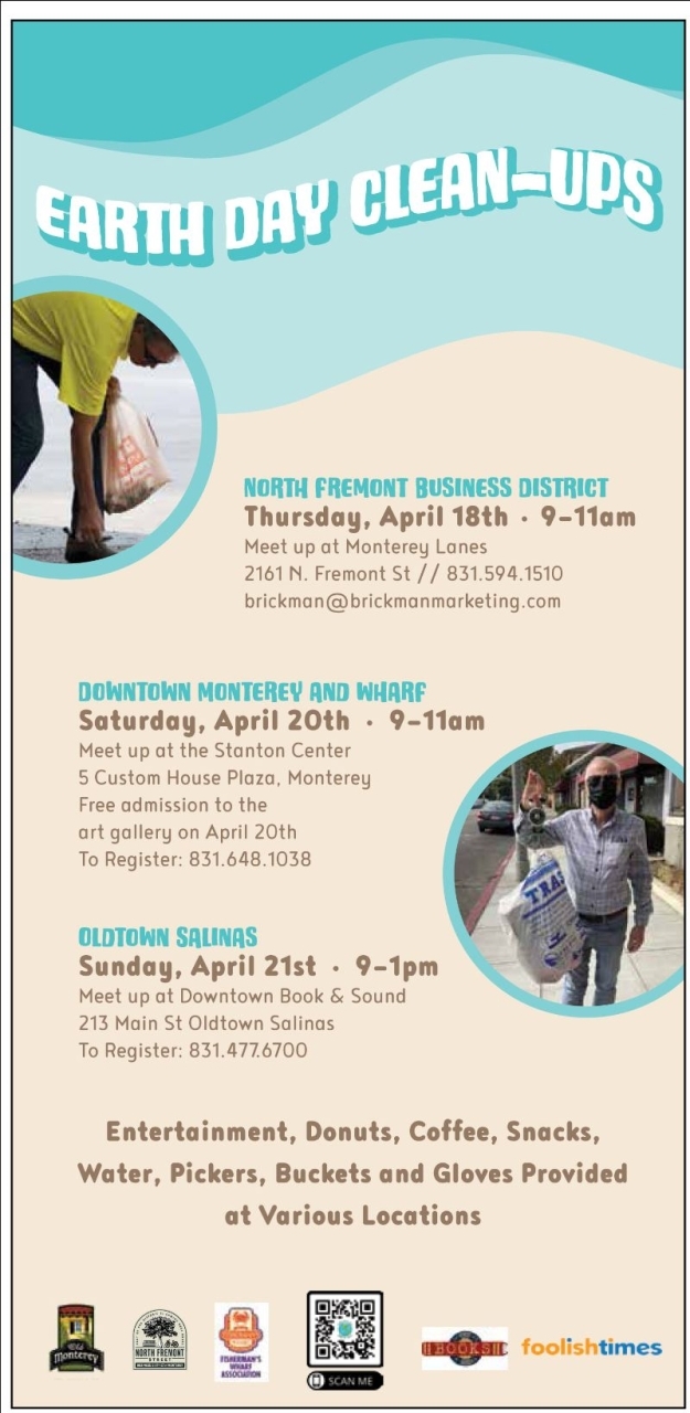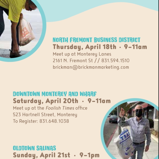 The Foolish Times invites you to help us clean up Downtown Old Monterey streets on Saturday, April 20, 9am-11am. Let's beautify our beloved Downtown in honor of Earth Day!