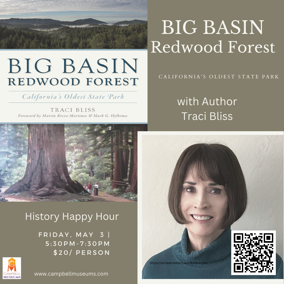 Join us for an evening with Author Traci Bliss as she details the history of Big Basin. Her book BIG BASIN Redwood Forest, California's Oldest State Park follows the amazing efforts to preserve the ancient redwood forest.