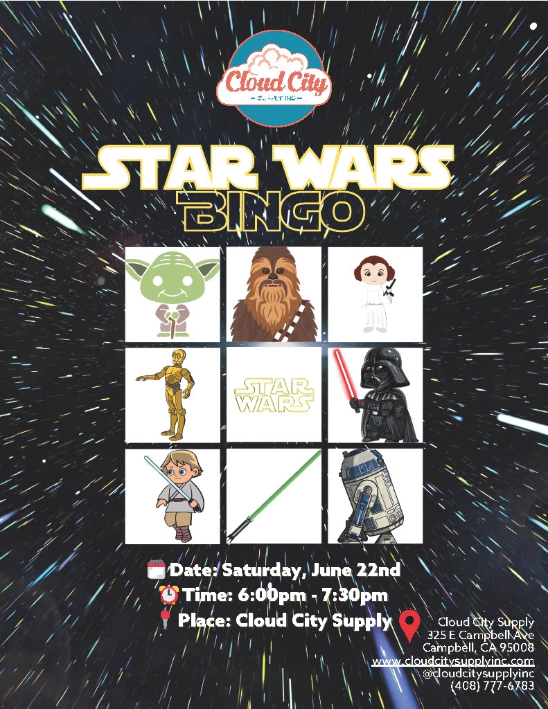 🌟✨ Join us for Summer Solstice Star Wars Themed Bingo at Cloud City Supply! ✨🌟