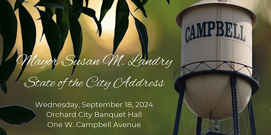 The 2024 State of the City Address will be presented by Mayor Susan M. Landry. Please join us to hear about the City's approach to addressing Sustainability, current and upcoming projects, and the fiscal health of the City of Campbell.
