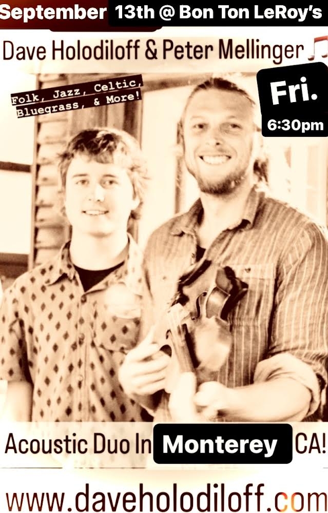 Join the dynamic duo of Dave Holodiloff on mandolin and guitar and Peter Mellinger on violin as they embark on an musical journey through jazz, Latin, Americana, Pop, Bluegrass, Celtic, and more.