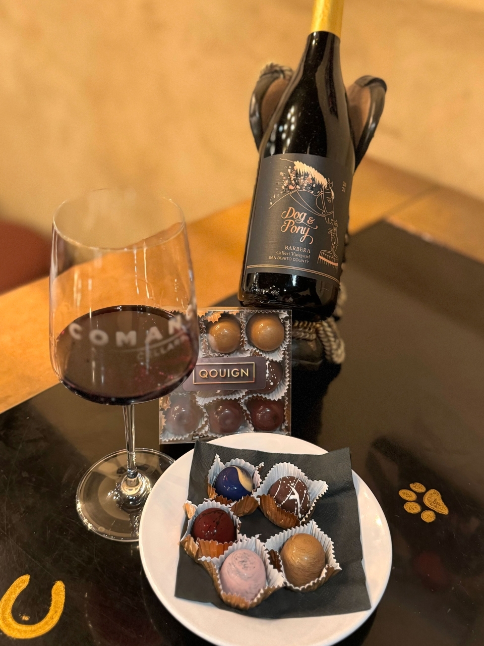 In honor of National Chocolate Day, Comanche Cellars Wine Room is hosting a wine and chocolate pairing event on Monday, October 28, 5:30pm-7:30pm. Enjoy six custom-made chocolates by local chocolatier Qouign paired with locally grown Comanche Cellars wine. Please allow 45 minutes for your tasting.