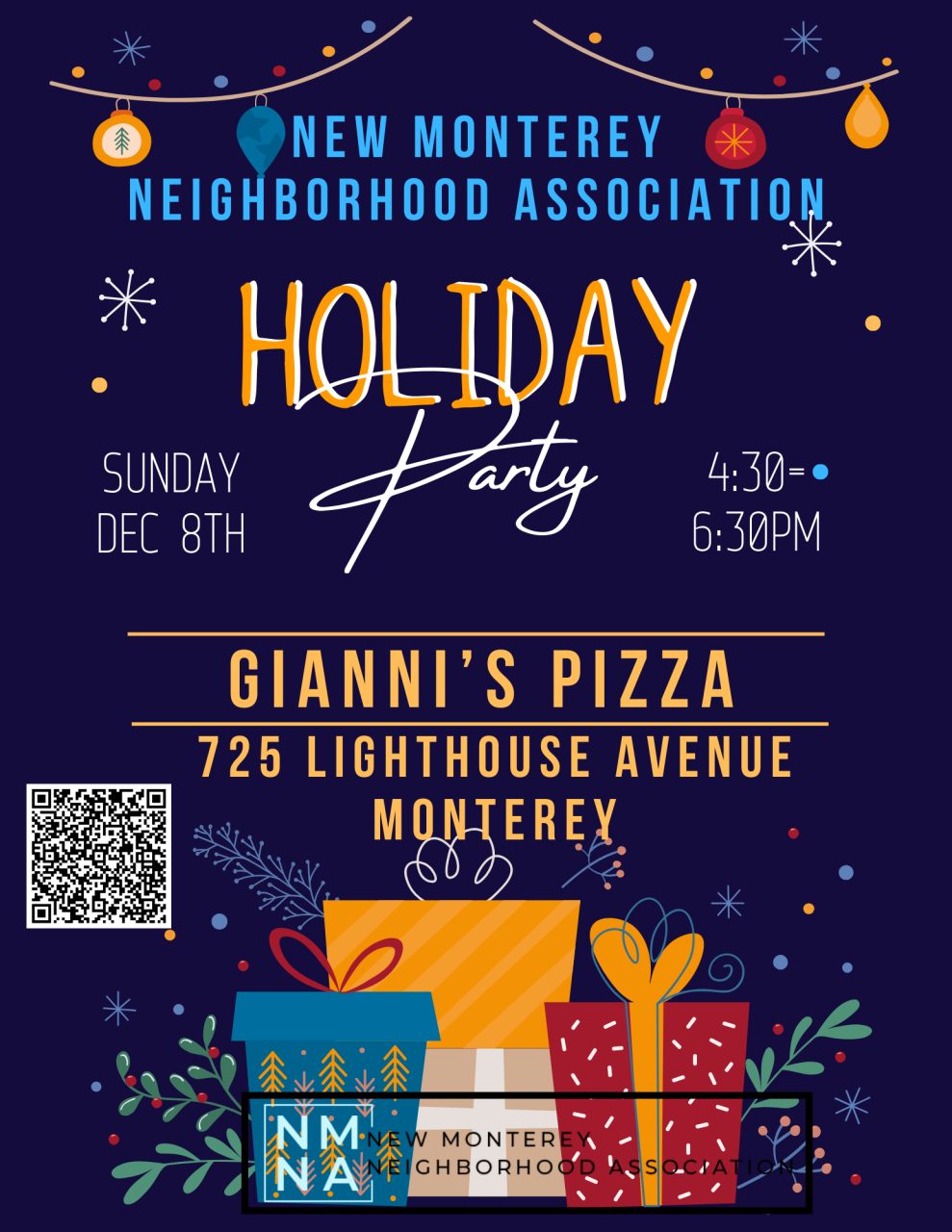 Do you live in New Monterey and want to become a registered member of the NMNA? It's only $10 per year! Help support our organization and come join the holiday party. Learn more and register here.