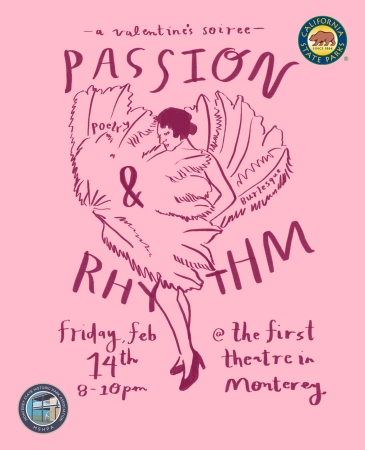 Monterey State Historic Park Association invites you to celebrate love, art, and seduction this Valentine’s Day at Passion & Rhythm: A Valentine’s Soiree, an unforgettable evening curated by Monterey County’s Poet Laureate, Rachelle Escamilla, at the First Theatre, 8pm-10pm. Ages 21+ only. Purchase tickets here.