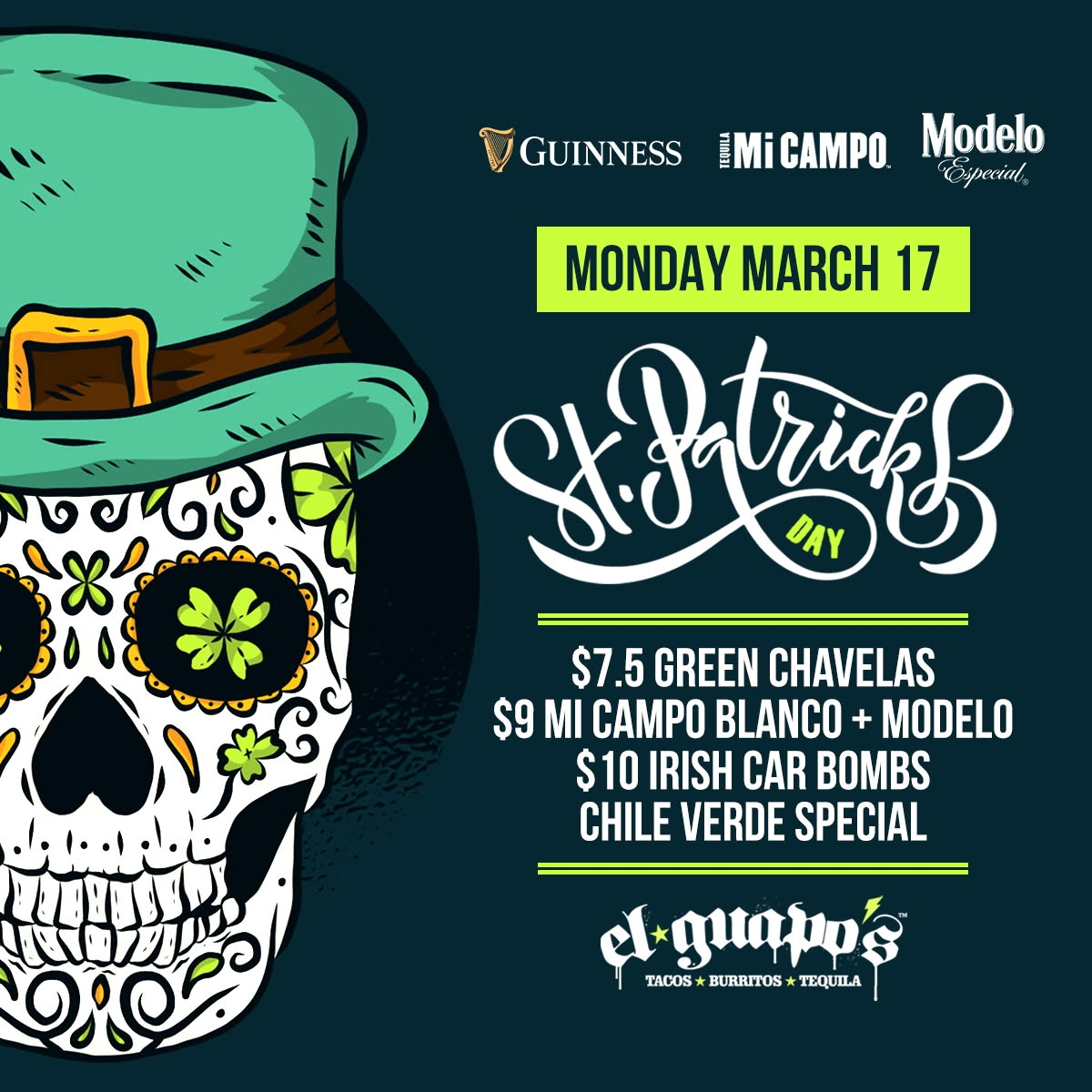 Celebrate St. Patrick's Day in Downtown Campbell at El Guapo's!