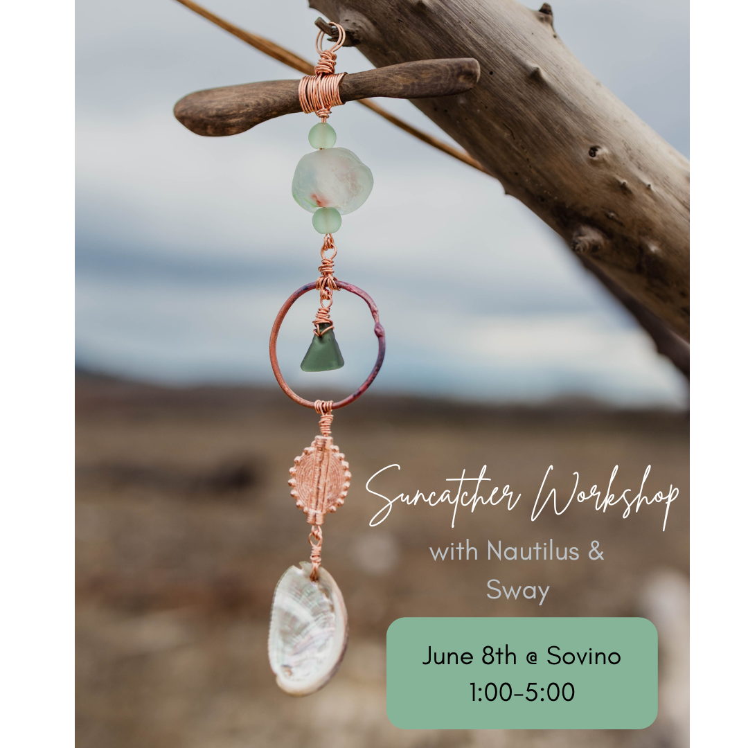 Sovino Wine Bar presents a Suncatcher Workshop with Carrie of Nautilus and Sway on Sunday, MJune 8, 1pm-5pm. Join us for an afternoon of crafts and wine as we make our own suncatchers!