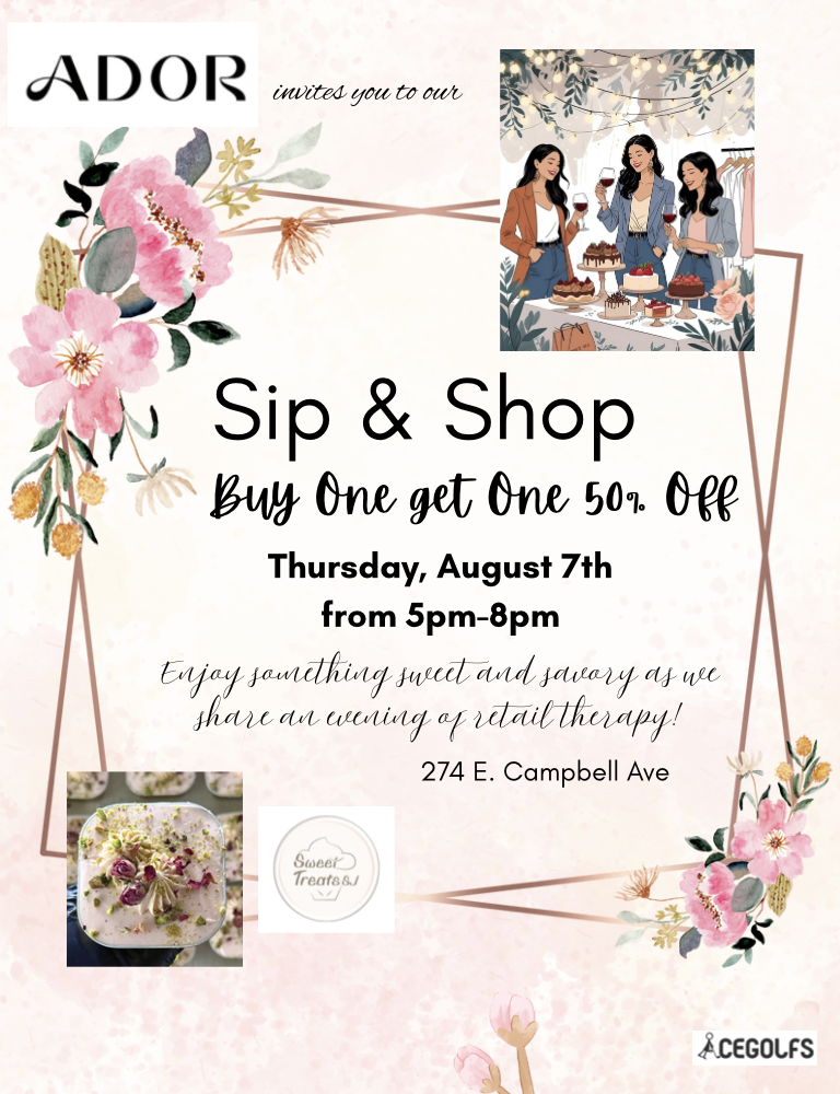 ADOR Boutique Sip & Shop: BOGO 50% Off of New Arrivals