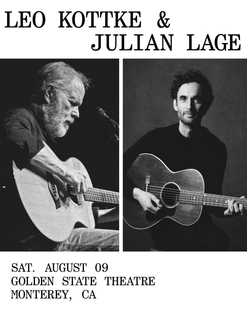 The Golden State Theatre presents guitarists Leo Kottke and Julian Lage on Saturday, August 9 at 8pm. Tickets are $55-$84. For more information and to purchase tickets, please click here.