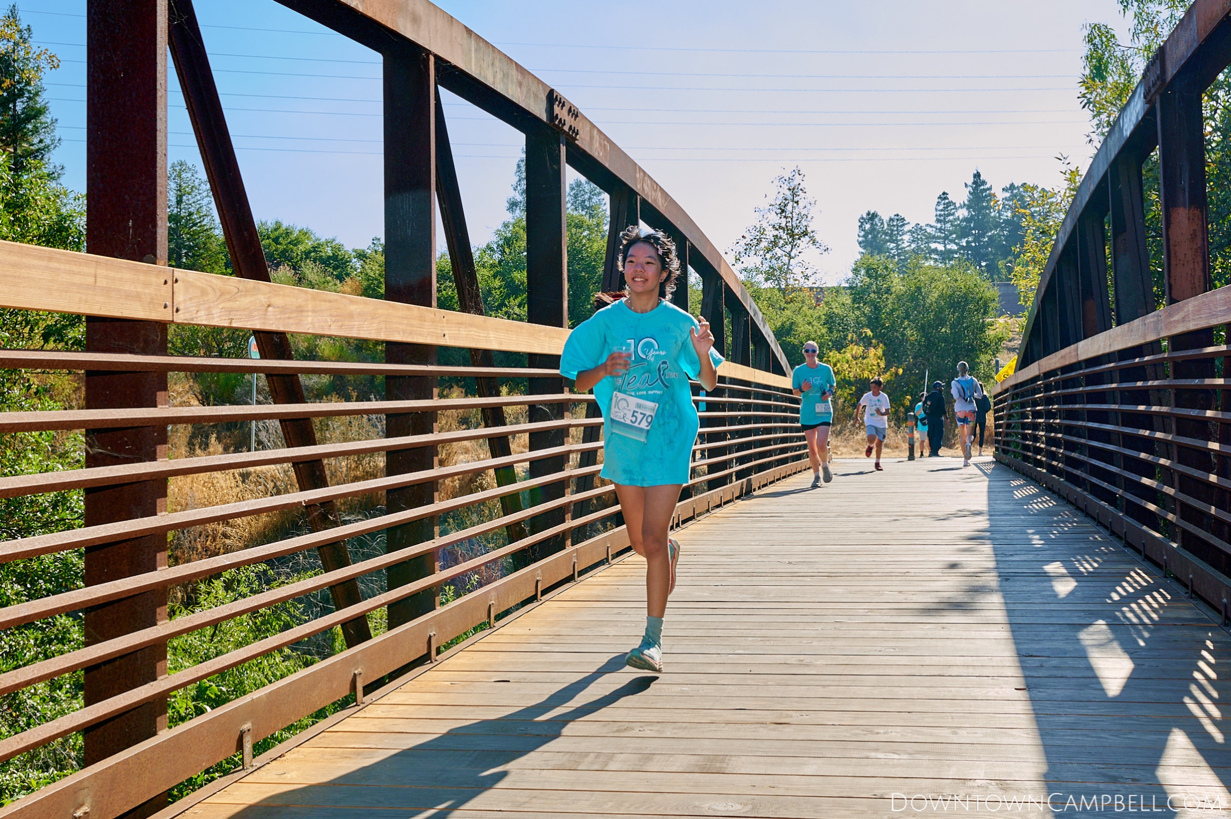 The 5K and 10K courses feature a beautiful loop around the Los Gatos Creek Trail, finishing just after the Campbell Bridge. It is paved and mostly flat with gentle inclines only. This is a great course for beginner and experienced runners alike!