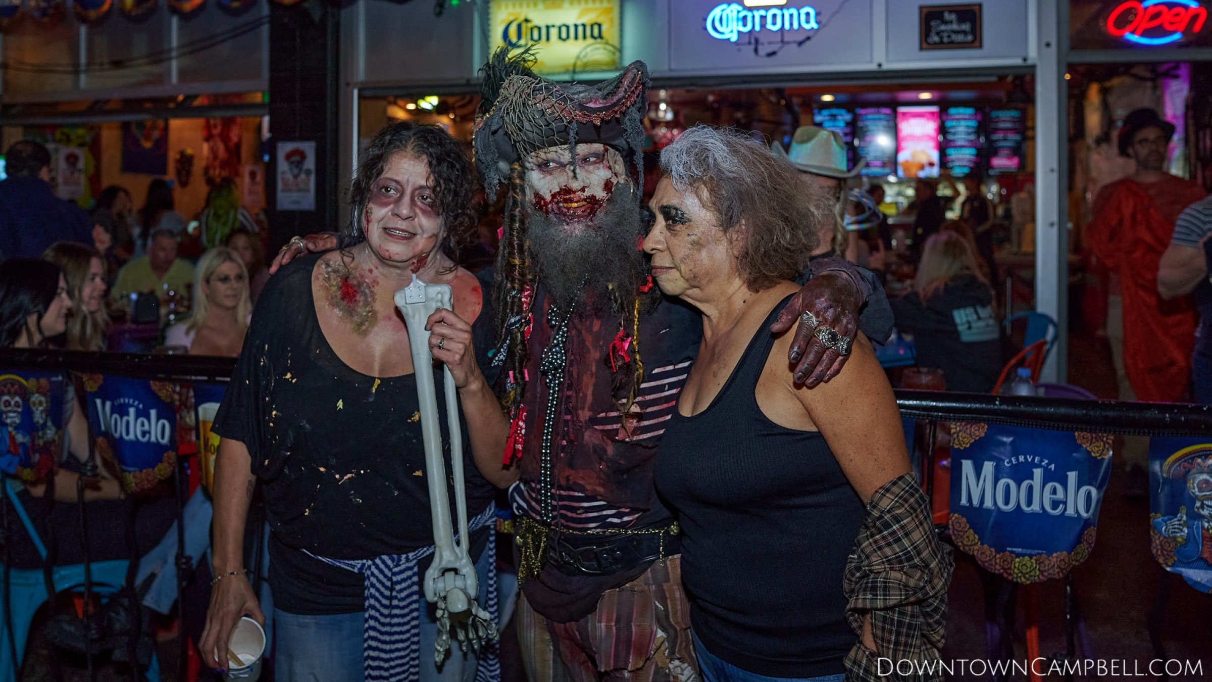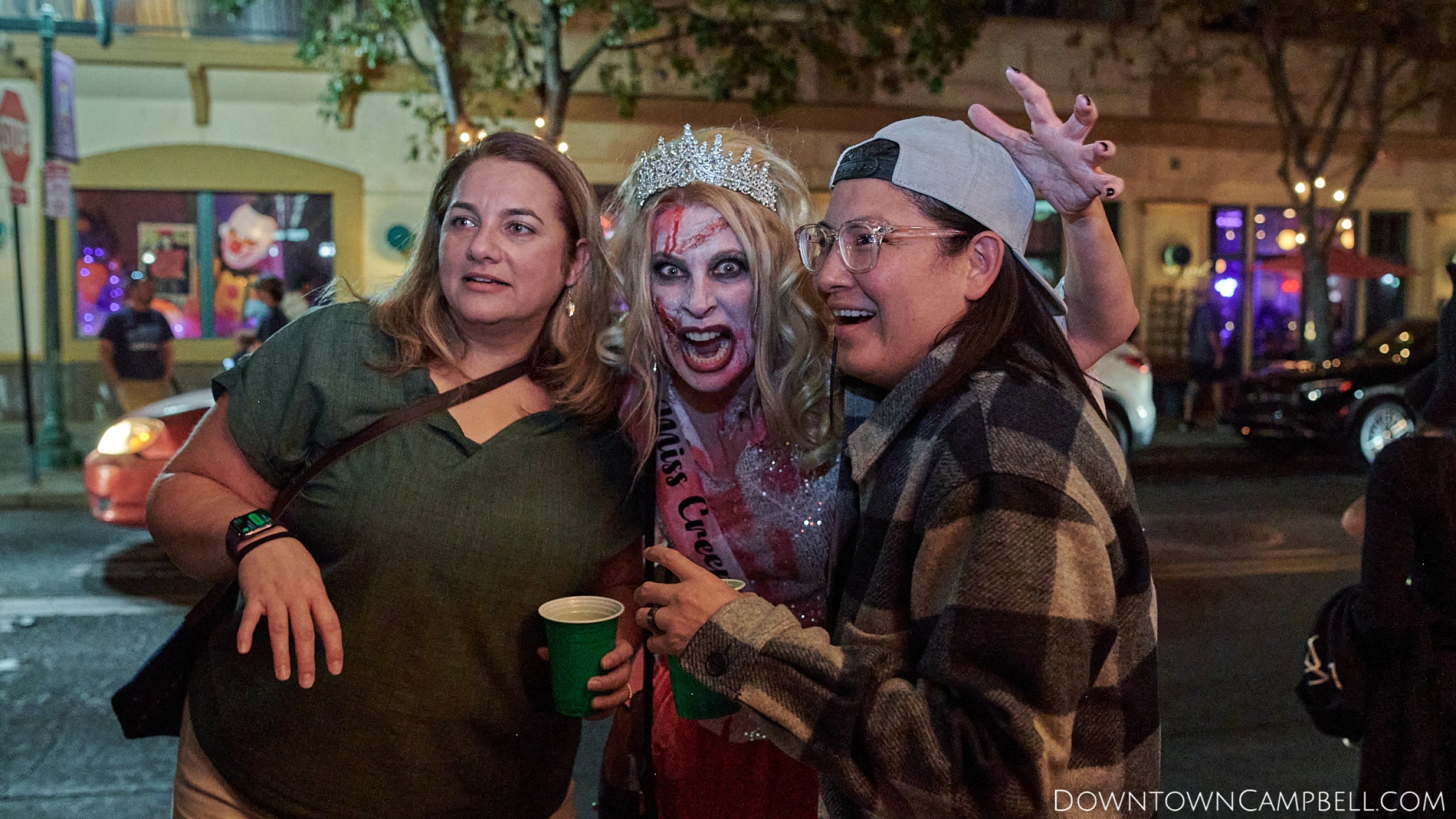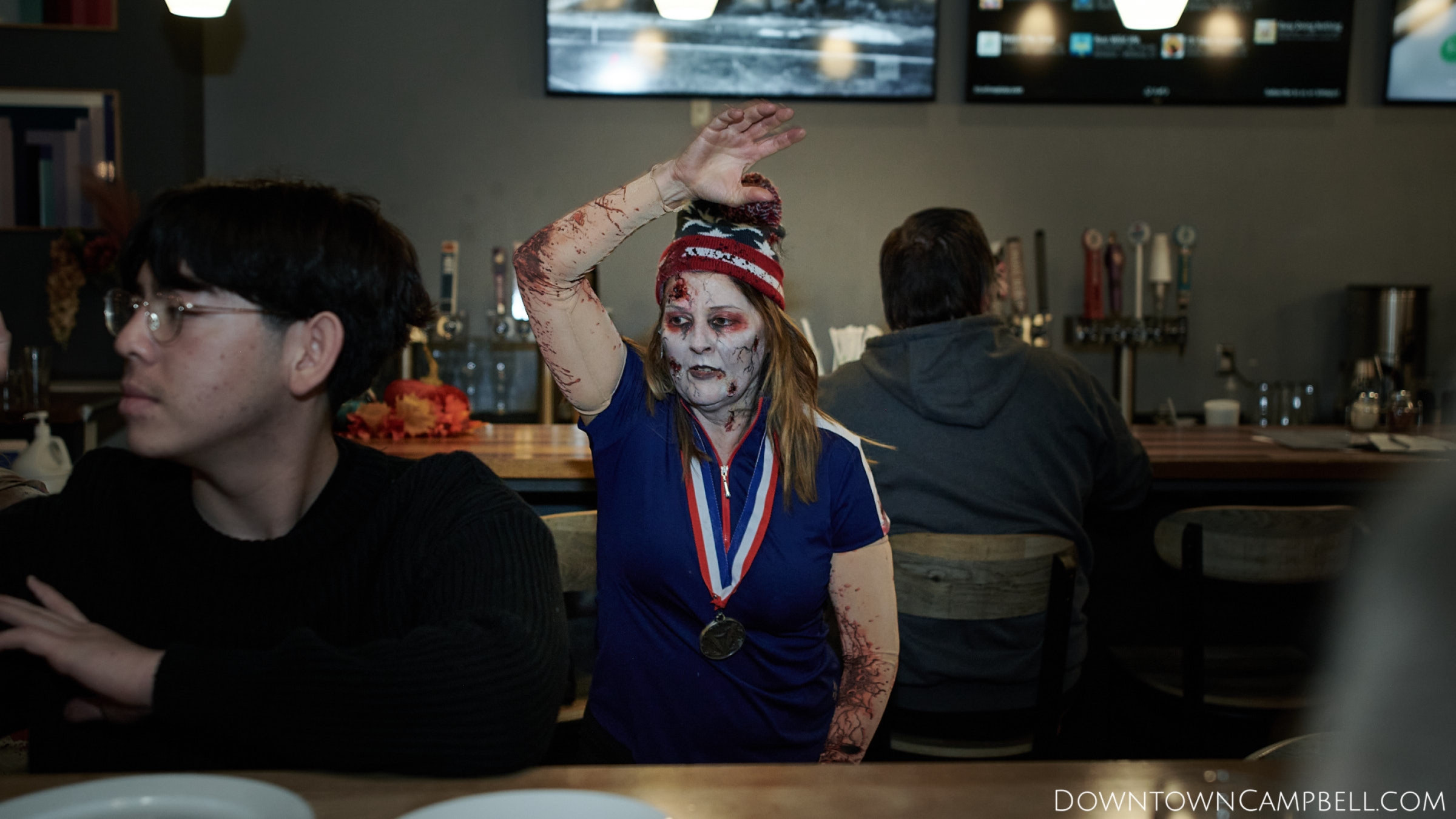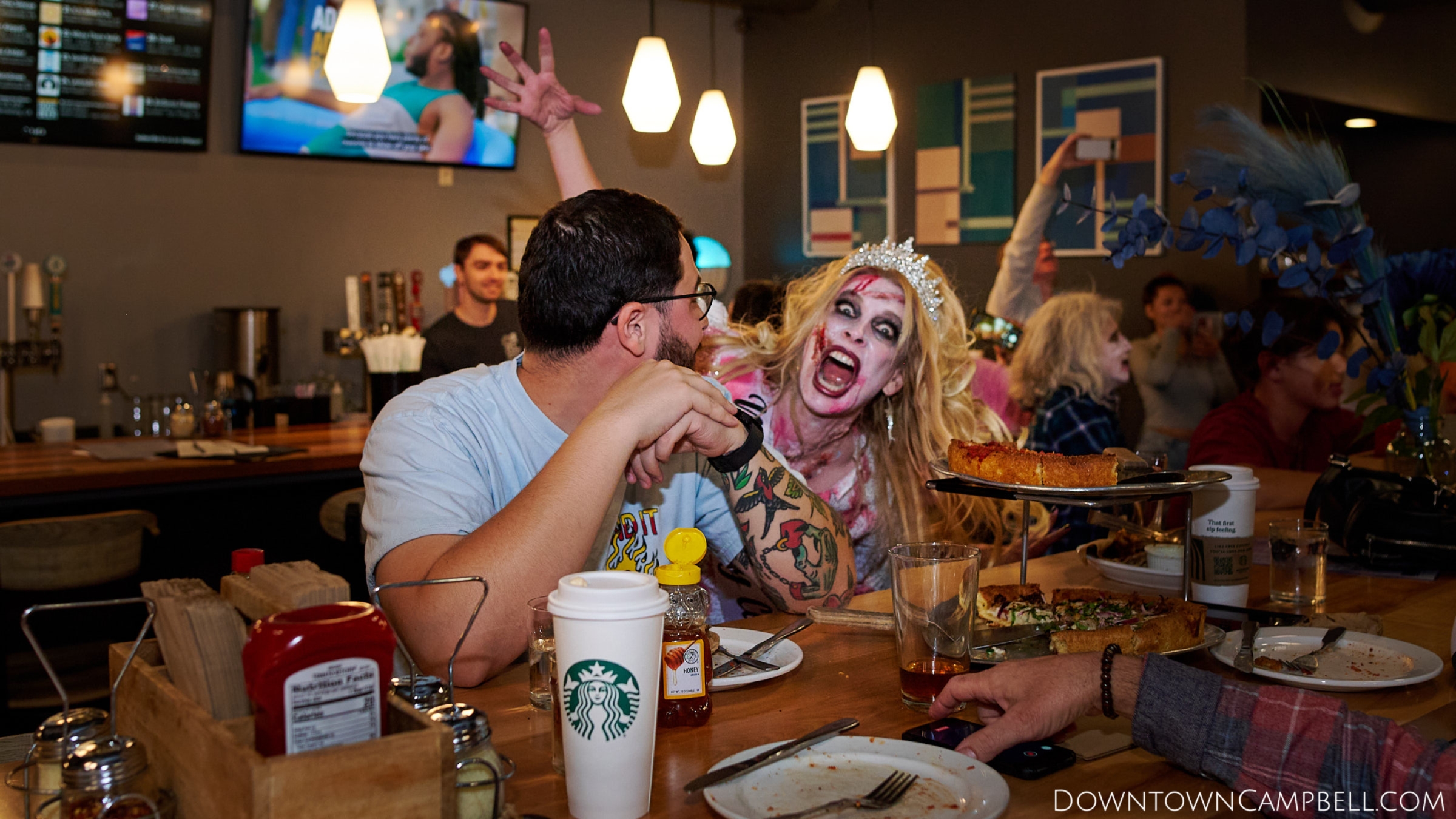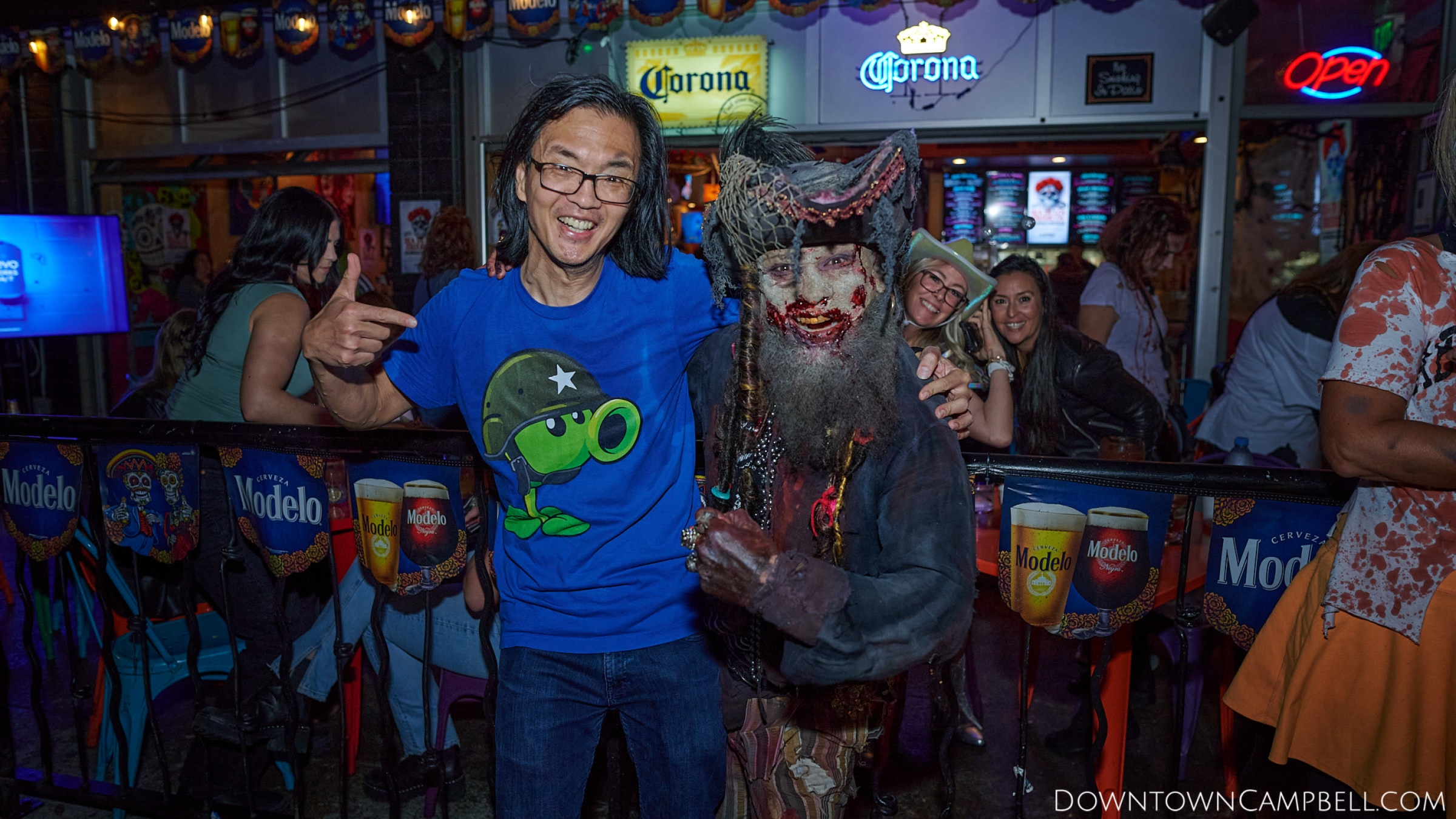 The terror begins at 7pm at Mo's and Willard Hick's Grill. It takes about 10 minutes for the zombies to get to each stop so if you want a front row seat, pick your favorite restaurant in Downtown Campbell and make reservations accordingly. The zombies will travel counterclockwise in a circuit around Downtown Campbell and finish the night at approximately 9pm at El Guapo's.
