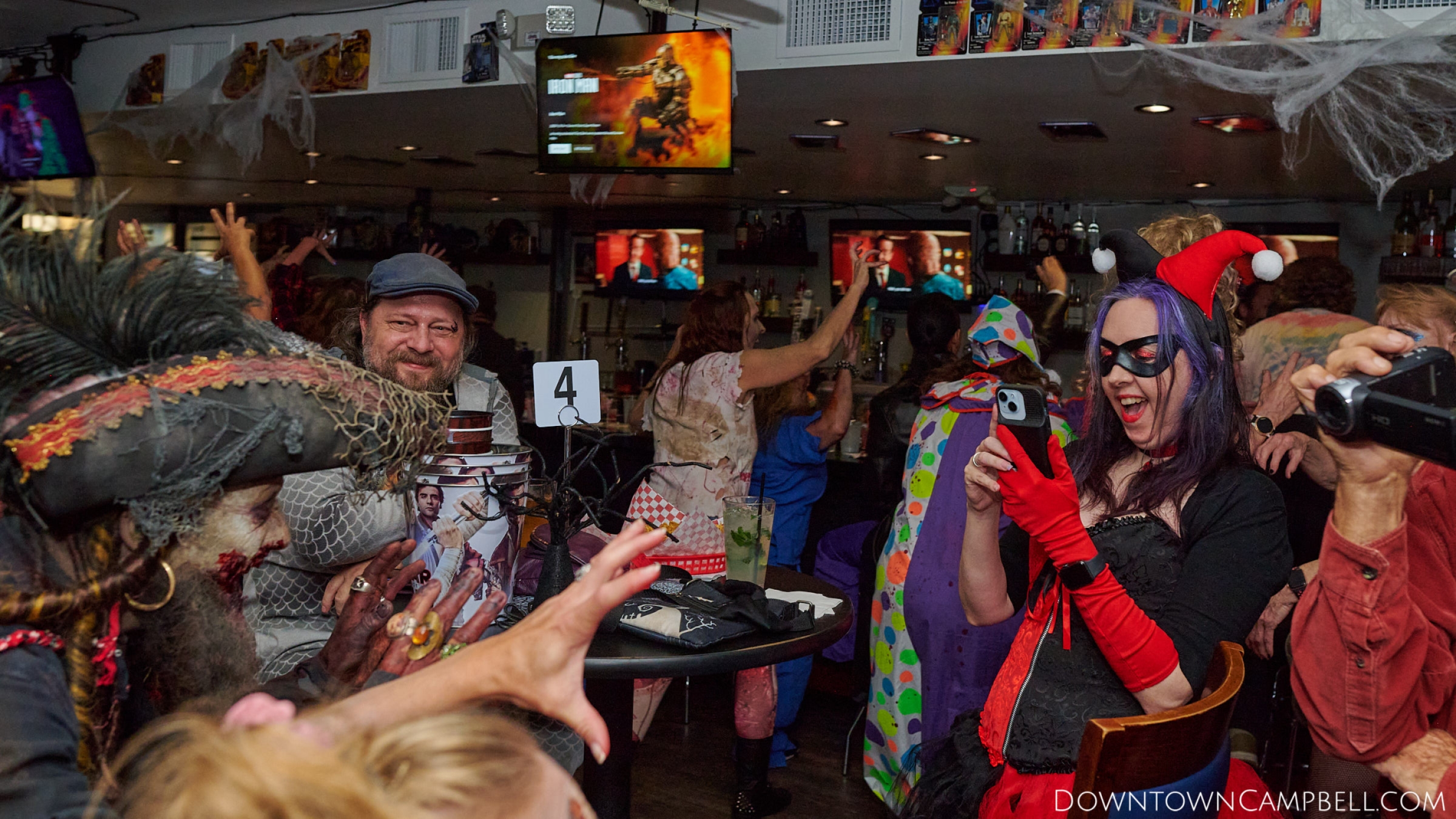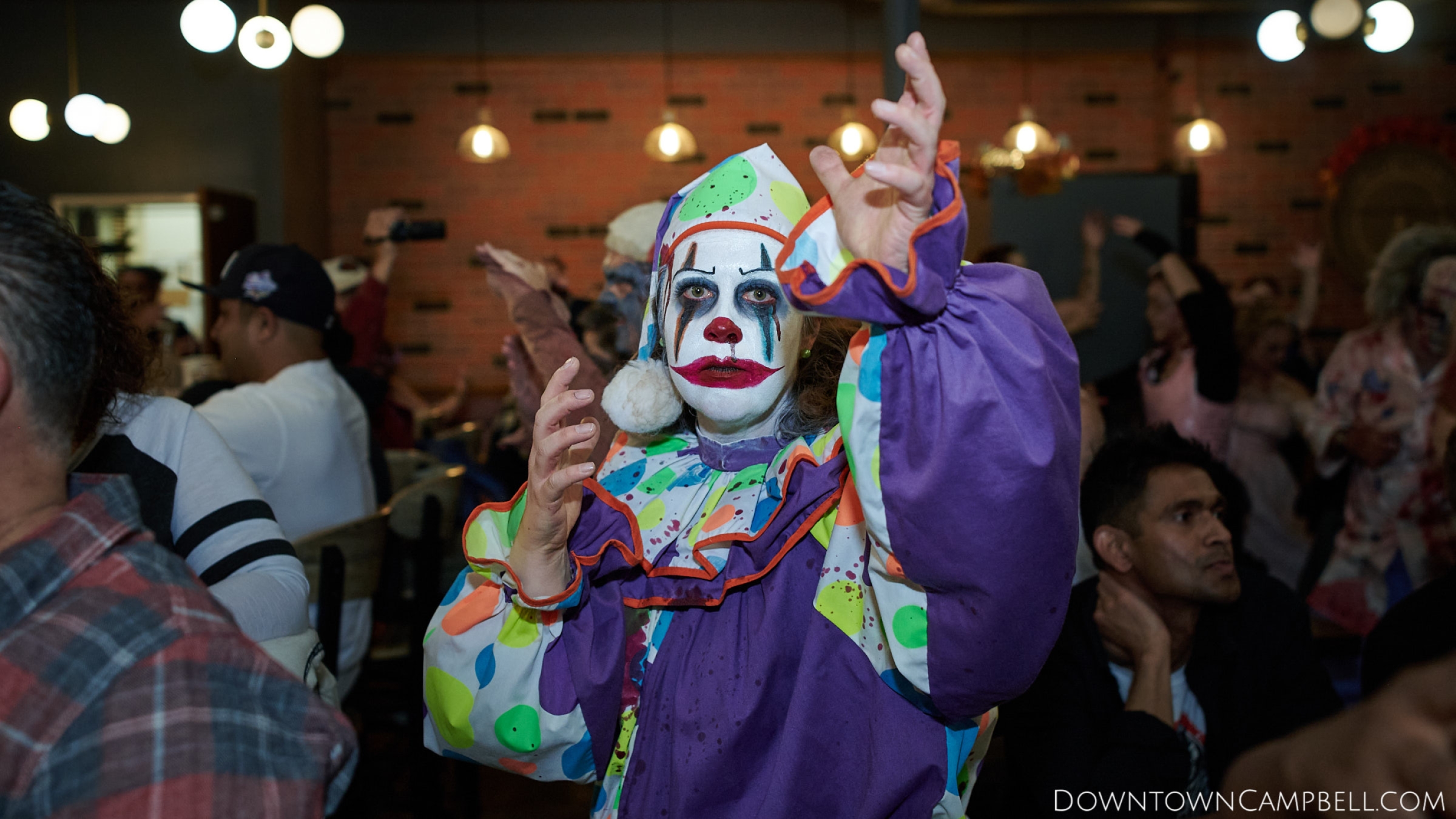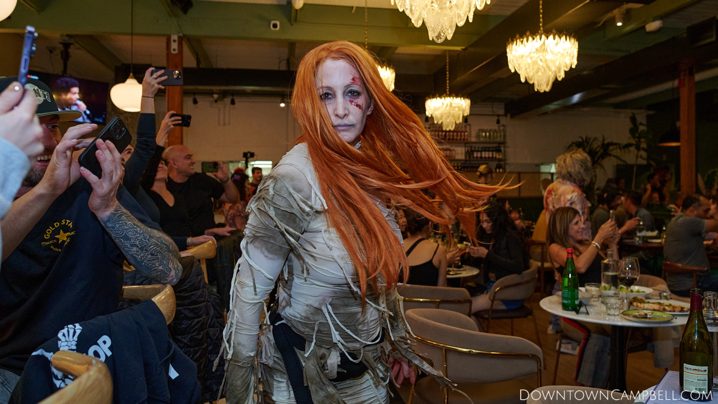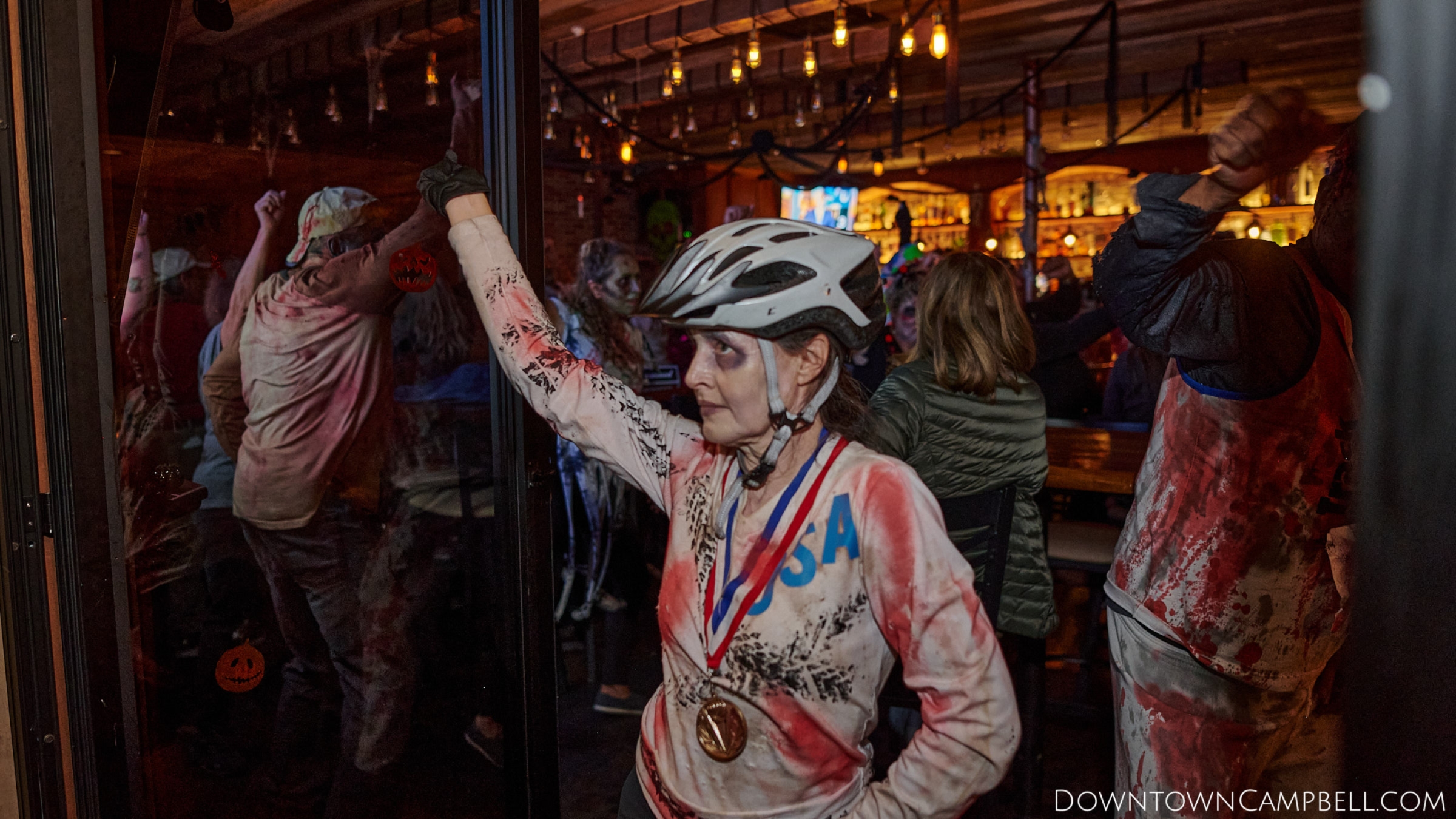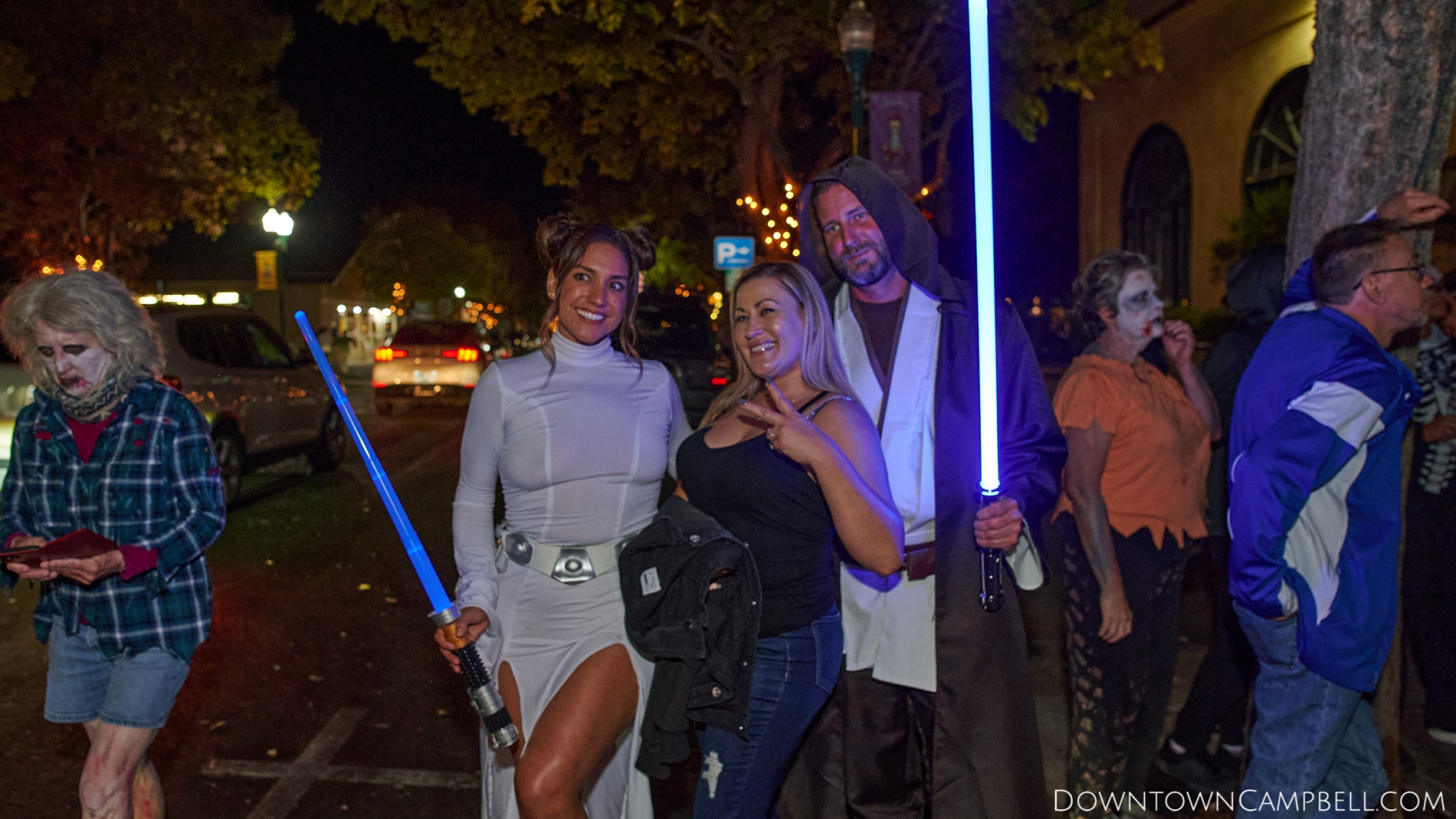 The terror begins at 7pm at Mo's and Willard Hick's Grill. It takes about 10 minutes for the zombies to get to each stop so if you want a front row seat, pick your favorite restaurant in Downtown Campbell and make reservations accordingly. The zombies will travel counterclockwise in a circuit around Downtown Campbell and finish the night at approximately 9pm at El Guapo's.