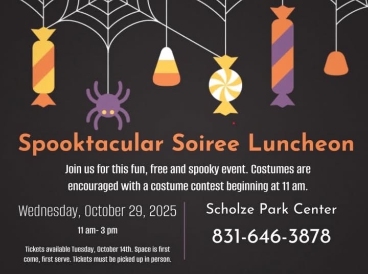 Scholze Park Community Center presents a Spooktacular Soiree Luncheon on Wednesday, October 29, 11am-3pm. This event is free, but registration is necessary as space is limited. Tickets will be available, first come, first served, beginning October 14, only in person at Scholze Park Center.