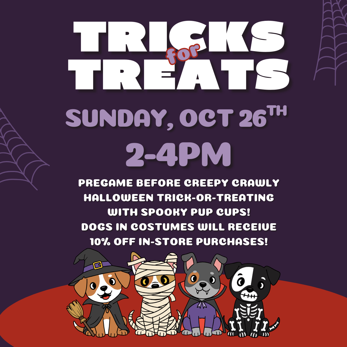 Pre-game before Downtown Campbell's annual Creepy Crawly Halloween Trick-or-Treating by socializing with local pups & enjoying some spooky pup cups! Dogs in costume will receive 10% off in-store purchases!