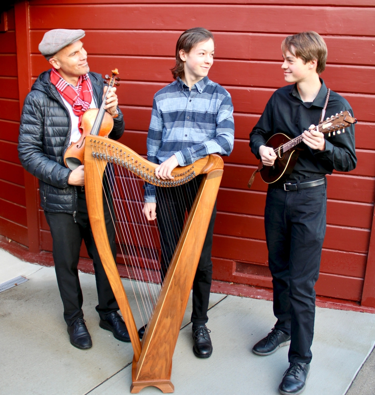 Join father John Weed (fiddle) and his sons Tyler (mandolin, guitar, tenor banjo) and Evan (Celtic harp, piano, melodica) on a musical journey through Ireland with a side trip into American Appalachian folk music. It will be an afternoon of driving Irish jigs and reels as well as slower, heartfelt ballads.
